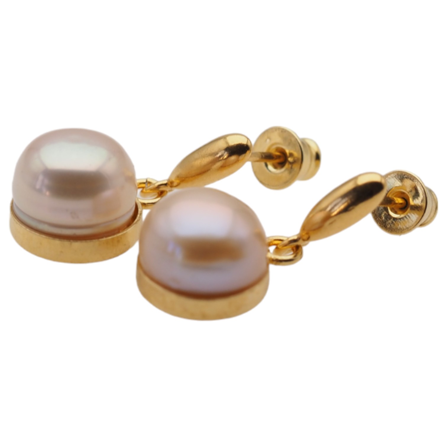 Kolczyki wiszące na sztyftach z różowymi Perłami hodowanymi i srebrem złoconym.