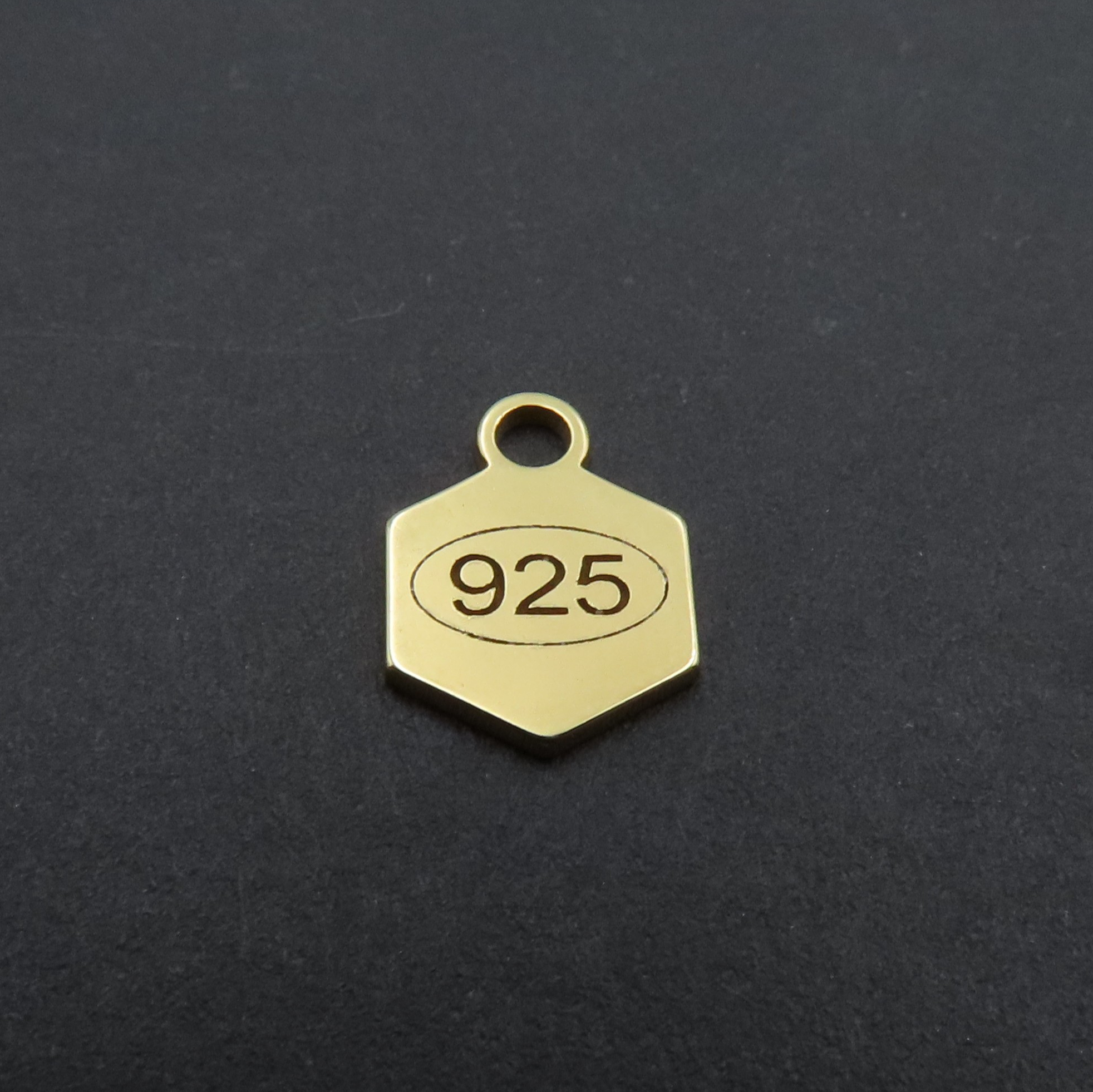Element ozdobny sześciokąt - blaszka cechownicza. Srebro złocone 24K próba 925.