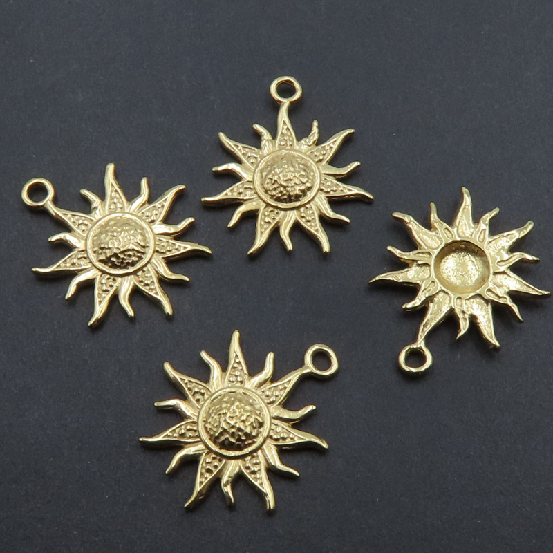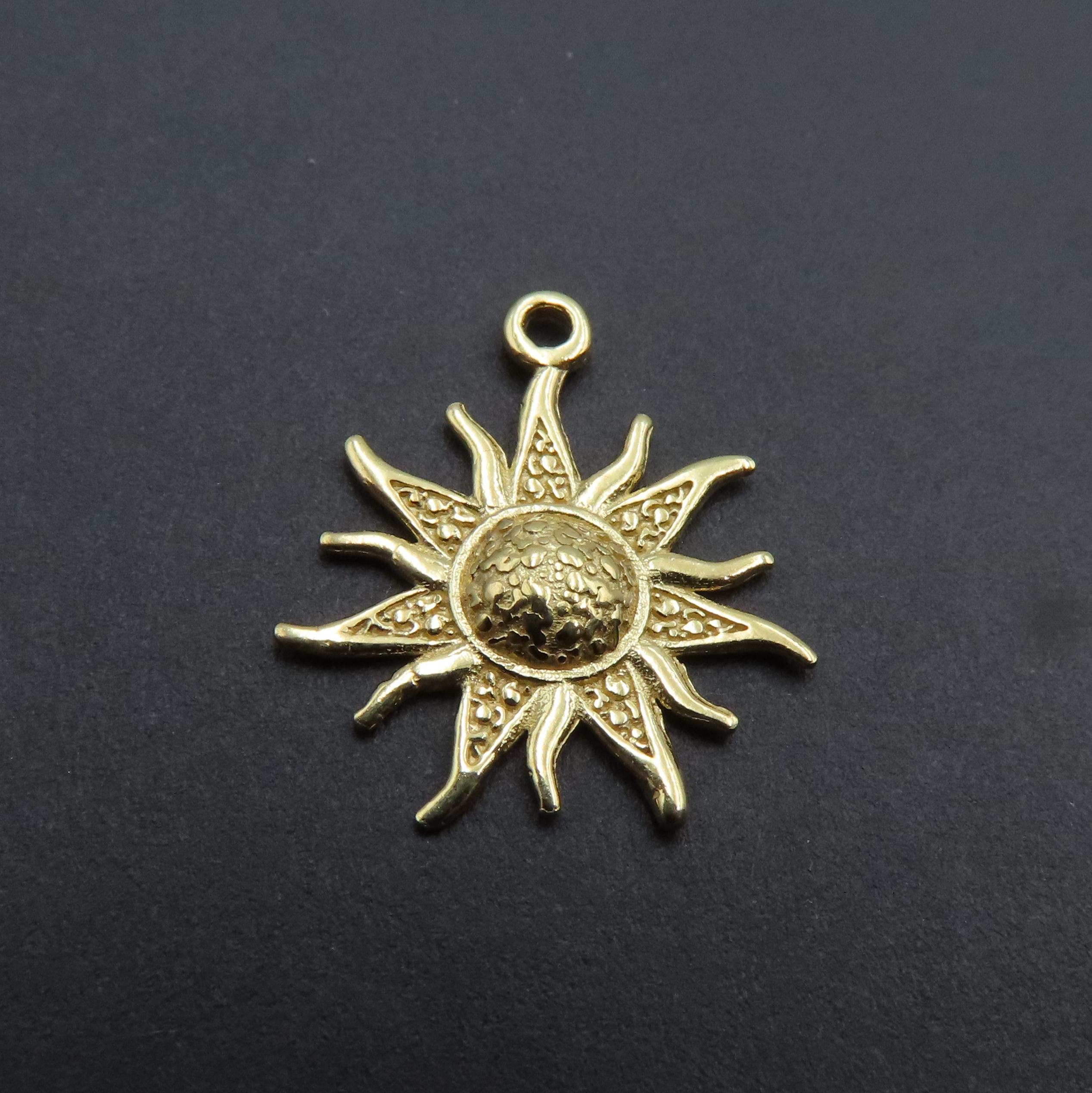 Element ozdobny, zawieszka słońce. Srebro złocone 24K próba 925.