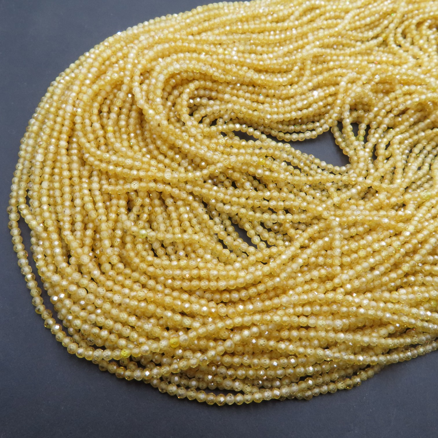 Cyrkon syntetyczny żółty - fasetowane kulki 2 mm (sznur)
