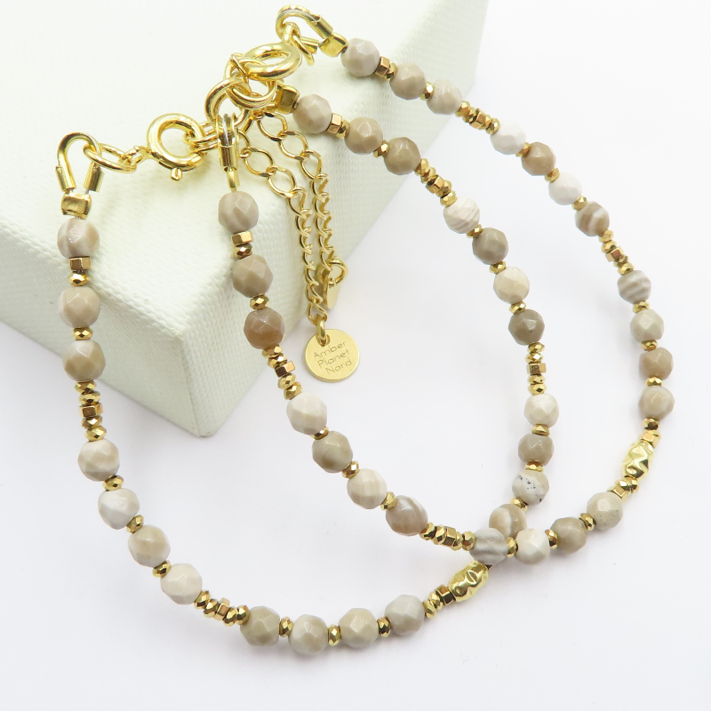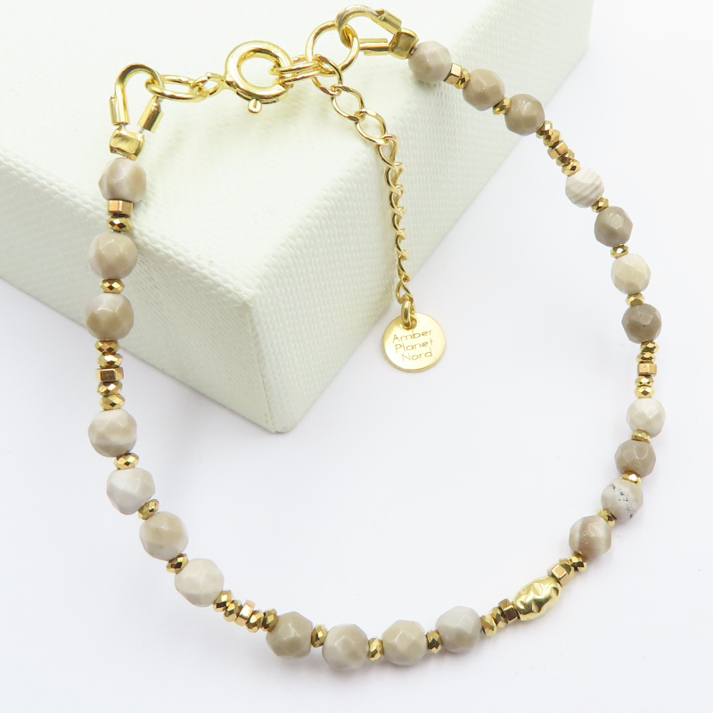 Bransoletka krzemień pasiasty fasetowany oraz złoty hematyt.