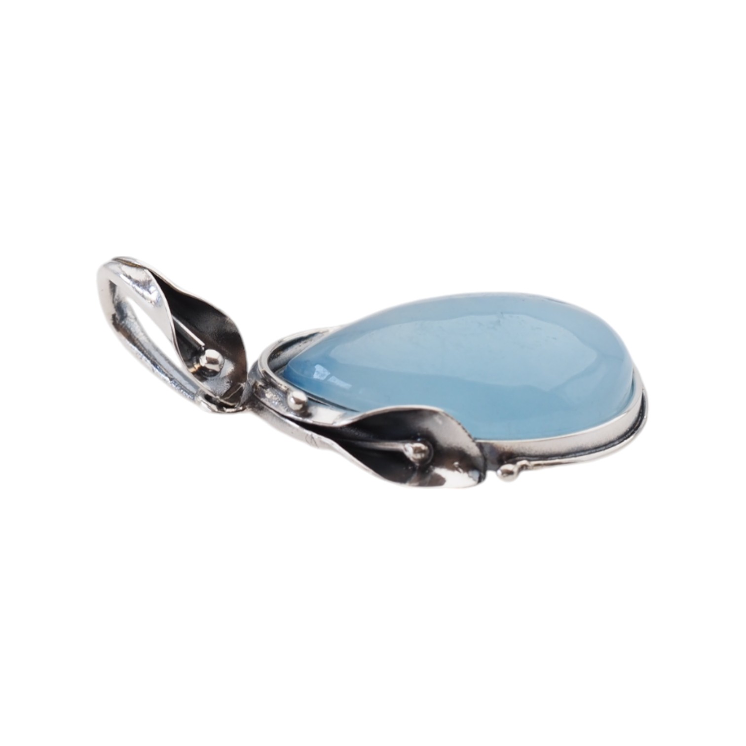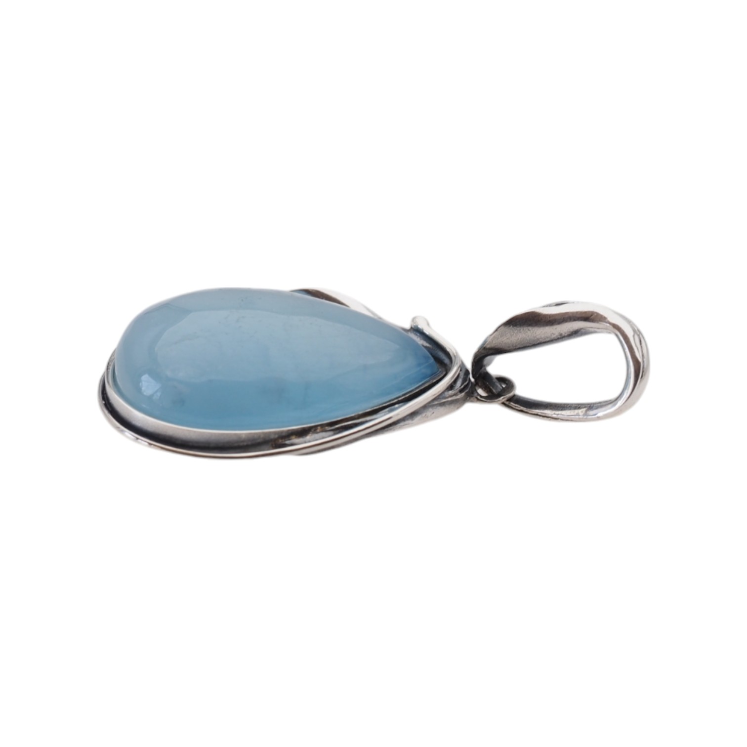 Naturalny Akwamaryn i srebro oksydowane - zawieszka.