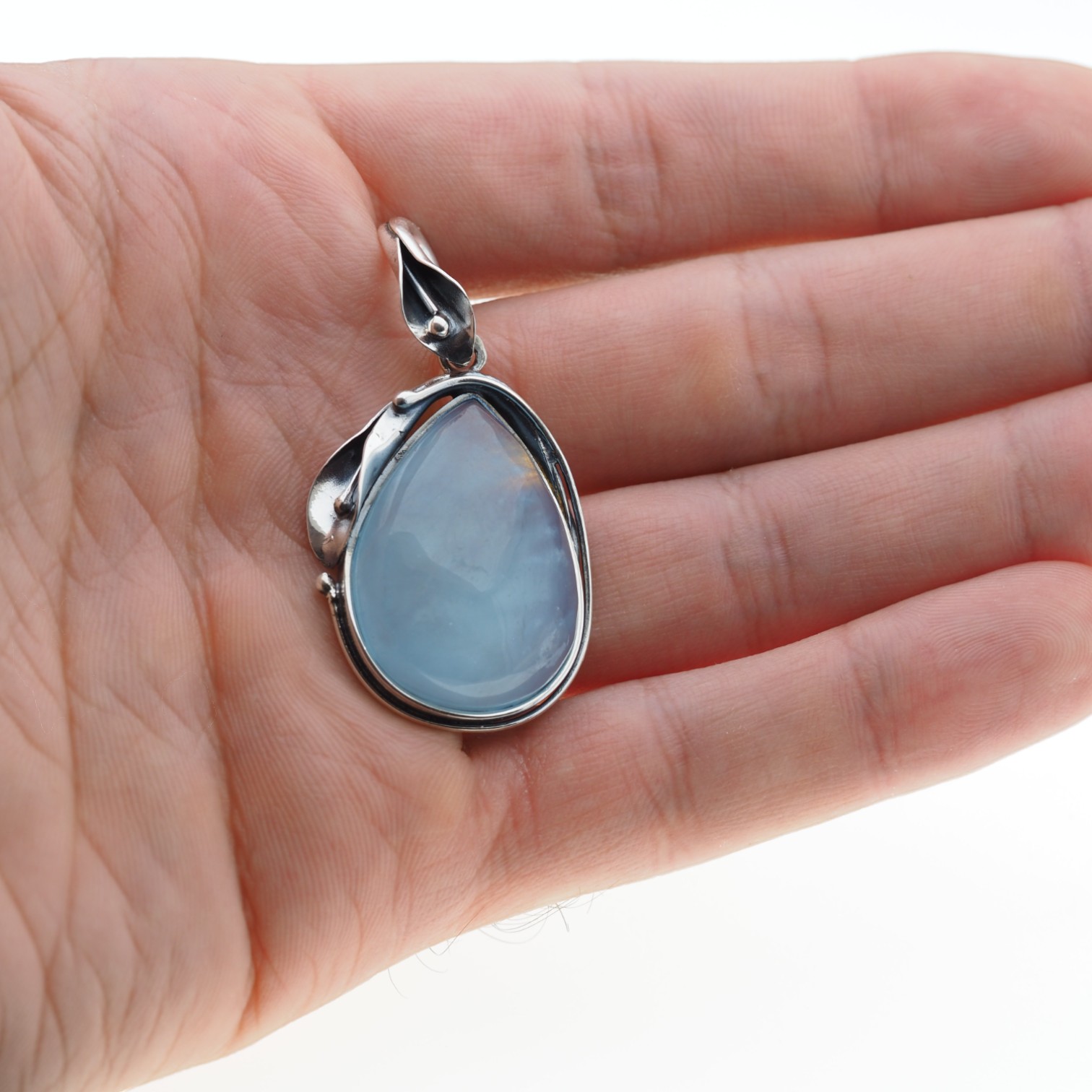 Biżuteria zrobiona ręcznie w srebrnej oprawie z motywem liścia. Srebro oksydowane próba 925.