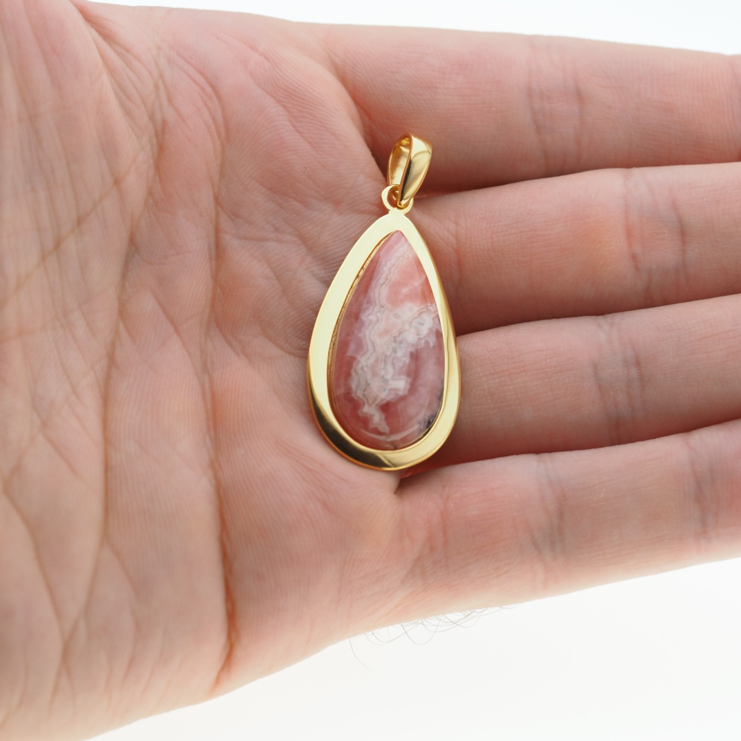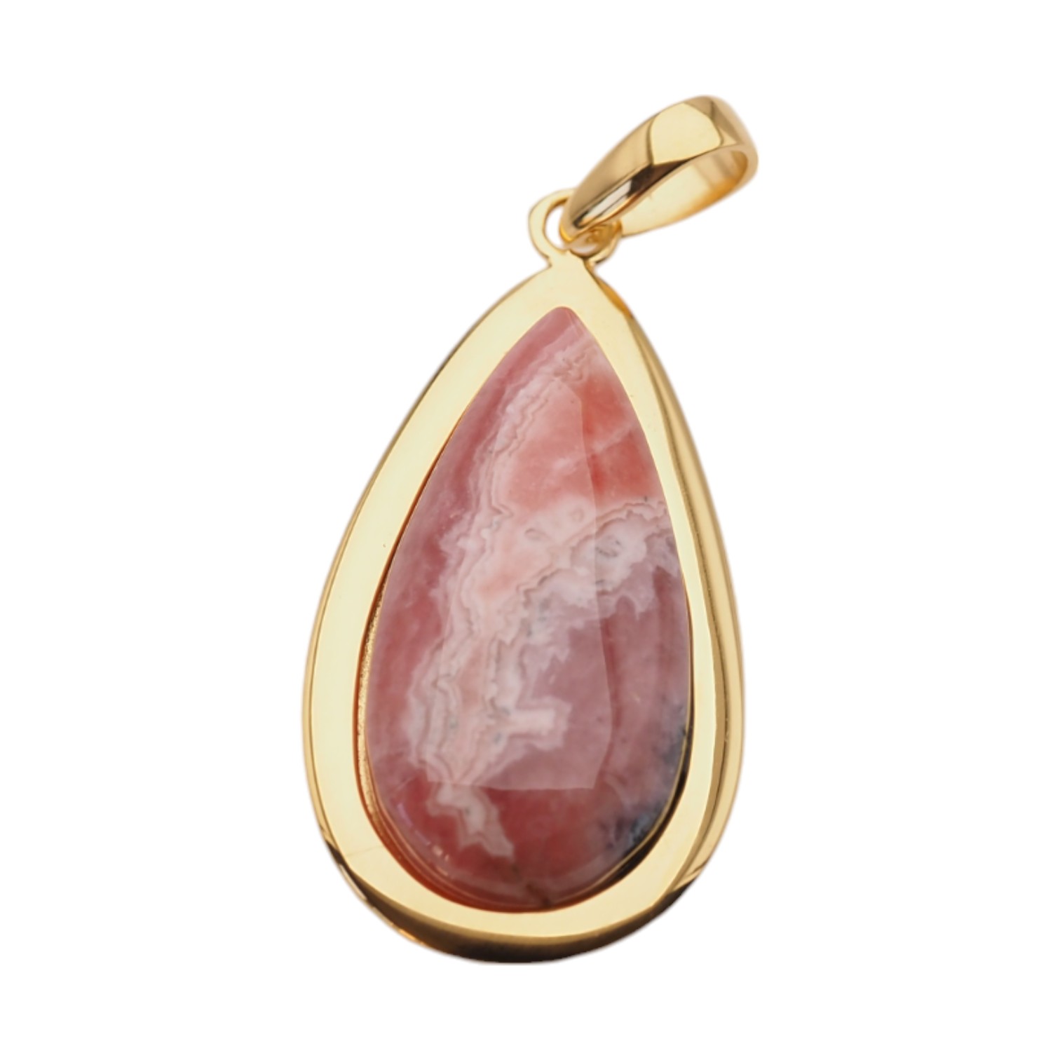 Zawieszka wytworzona ręcznie z Rodochrozytem w kształcie łzy.
