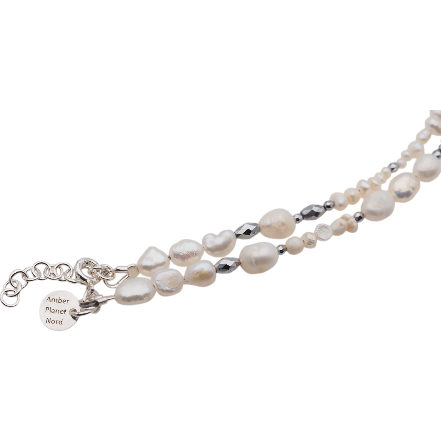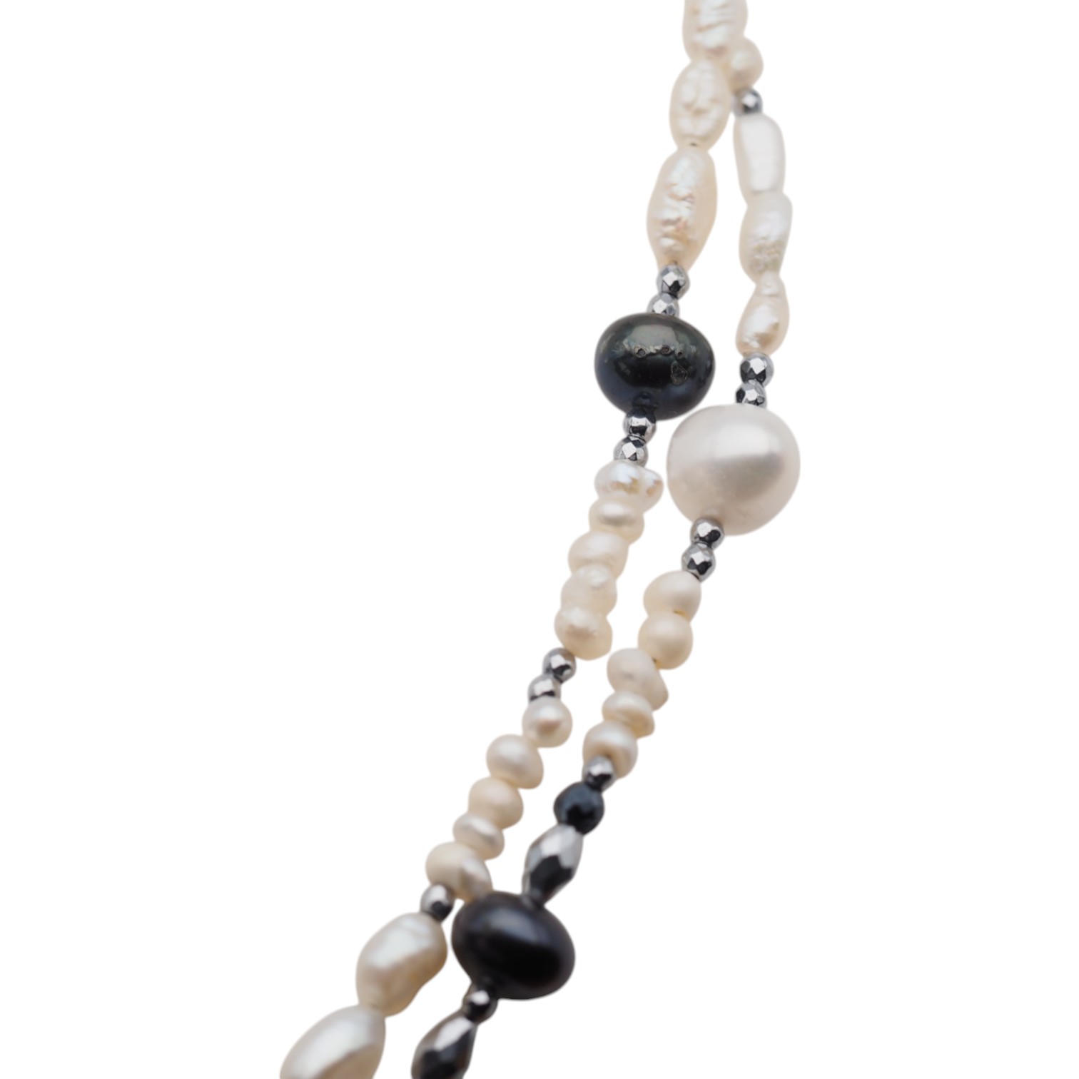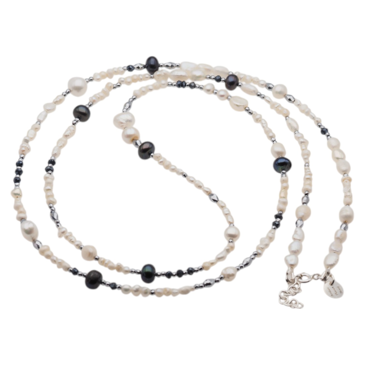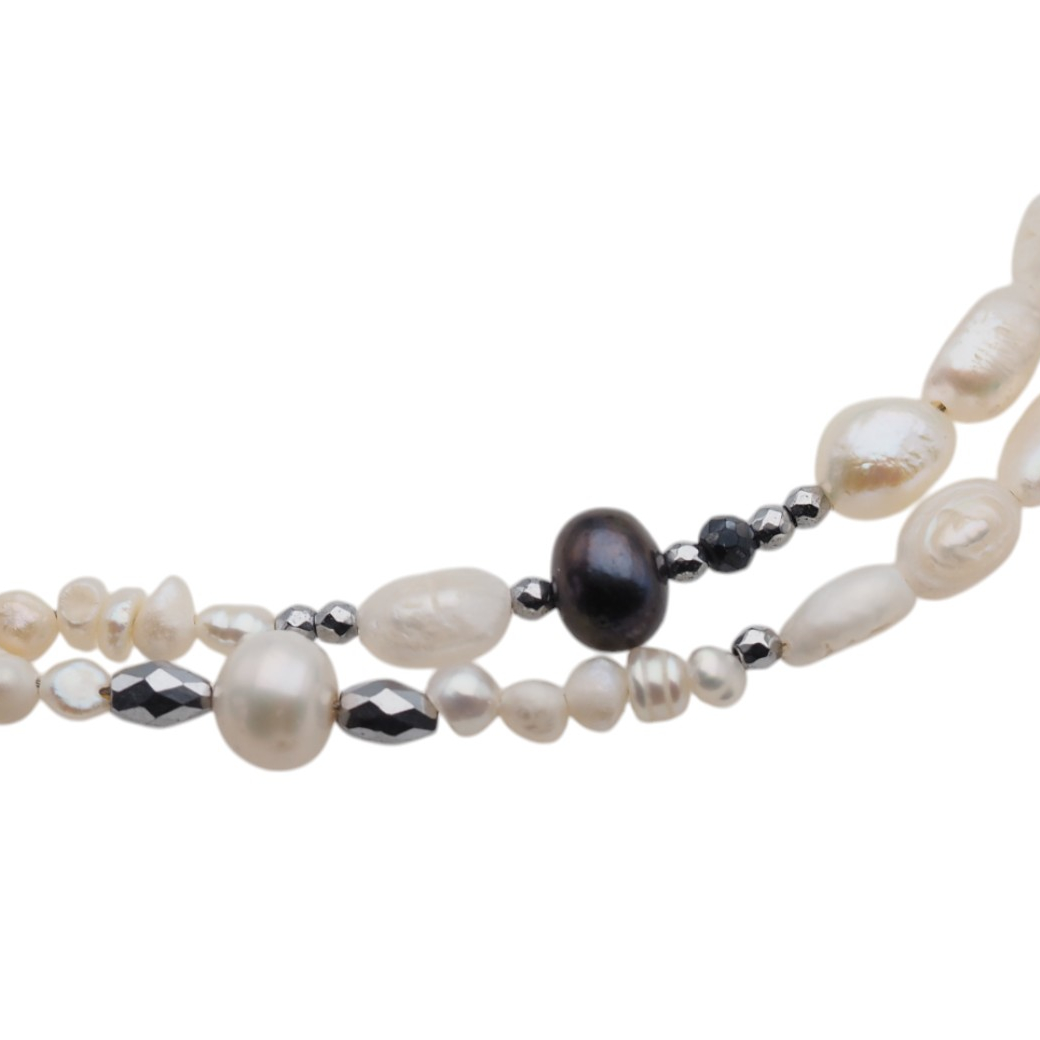 Naszyjnik z Perłami Naturalnymi i Hematytem w srebrze.