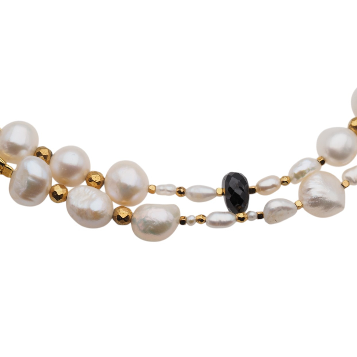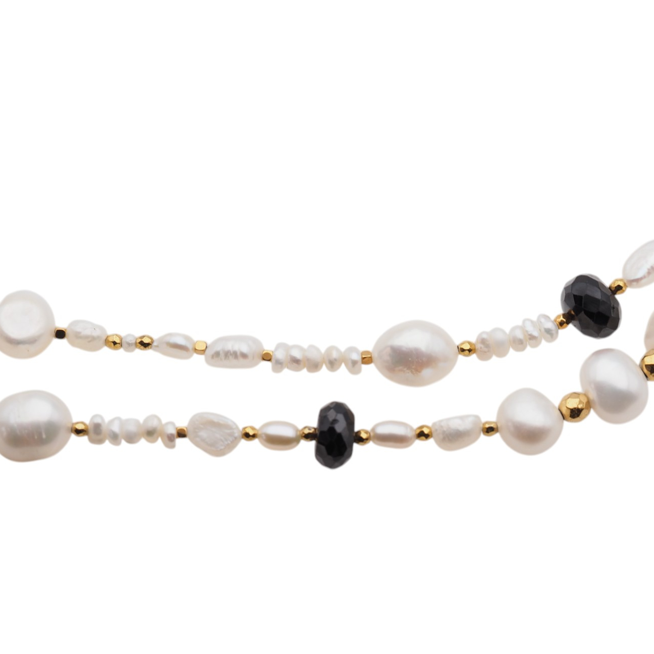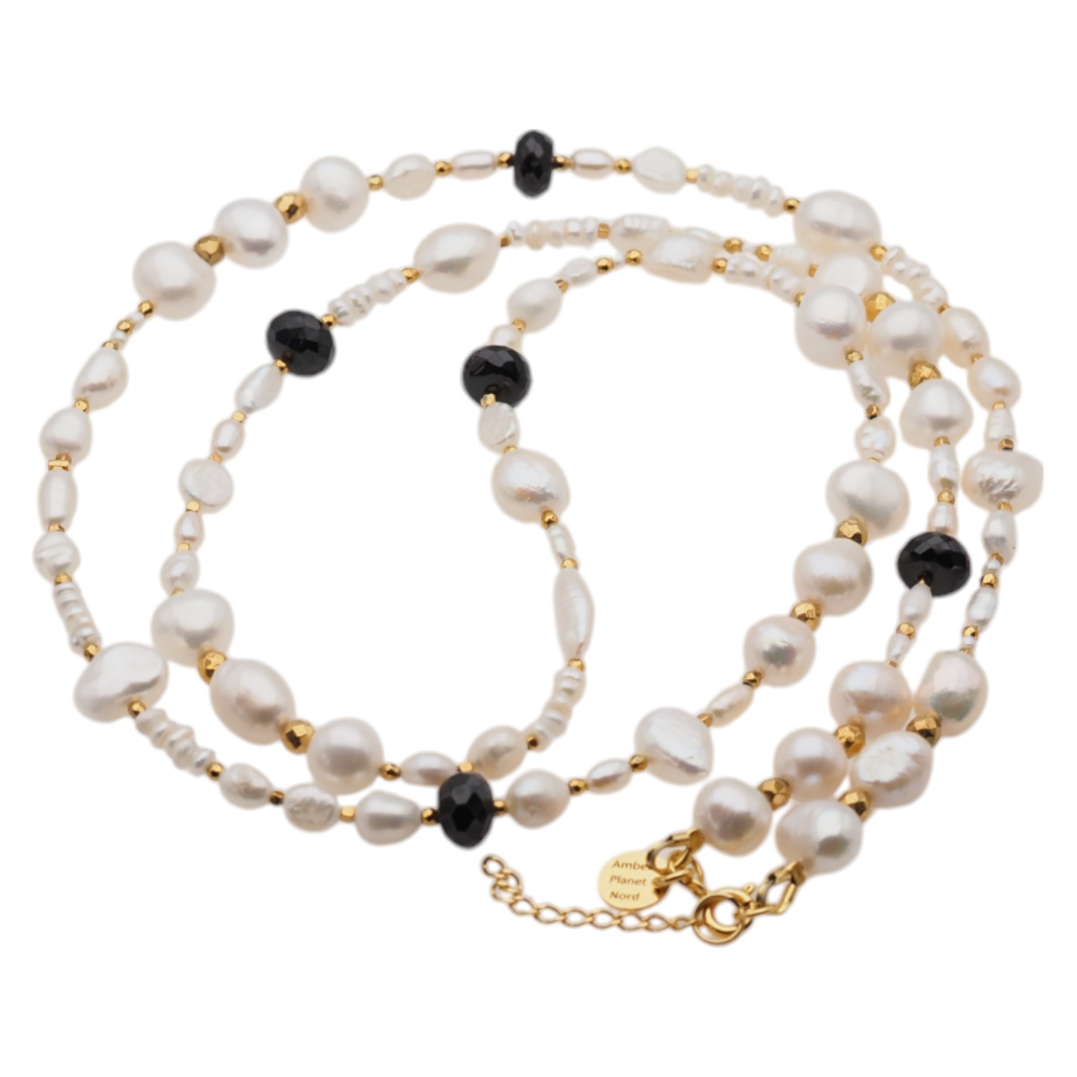 Naszyjnik z naturalnymi białymi Perłami Naturalnymi, Onyksem i Hematytem w srebrze.