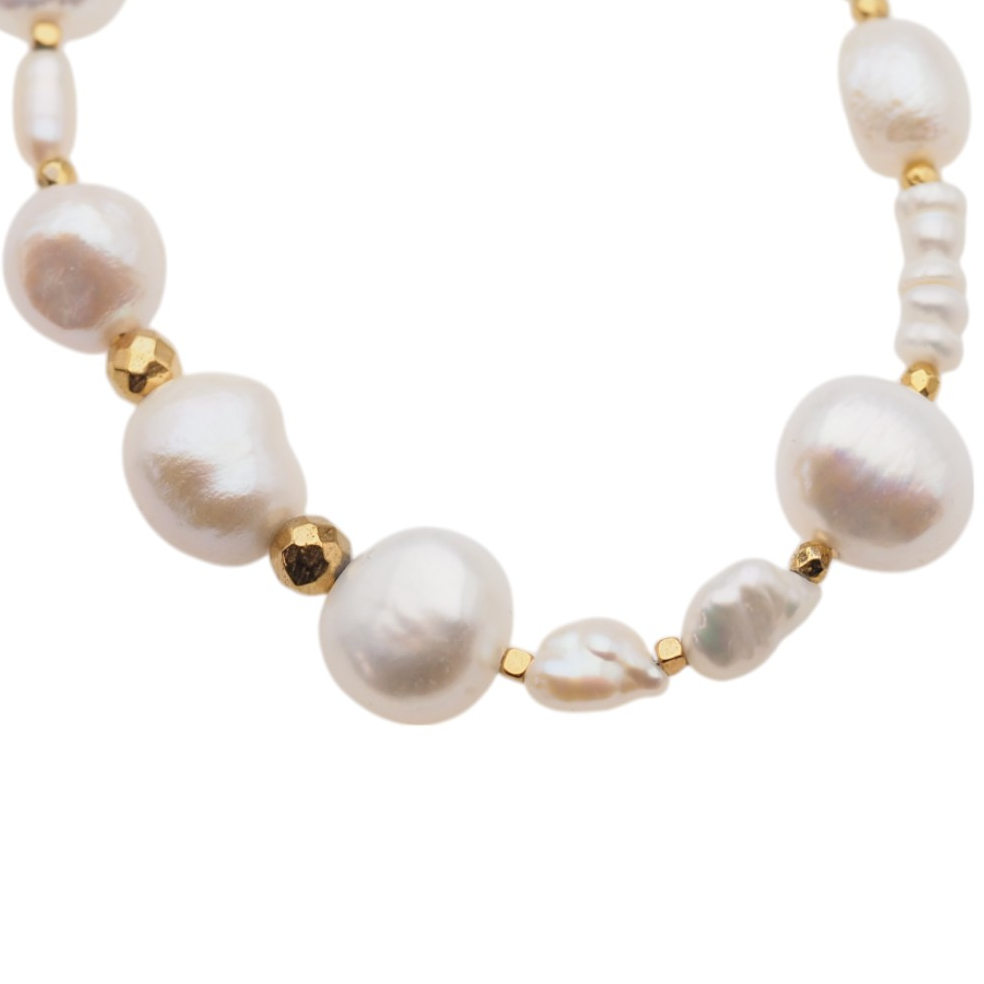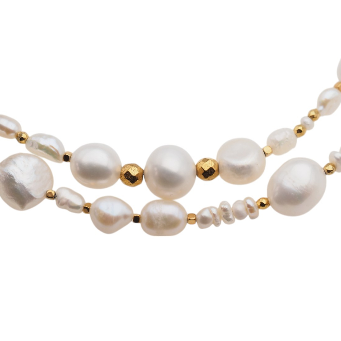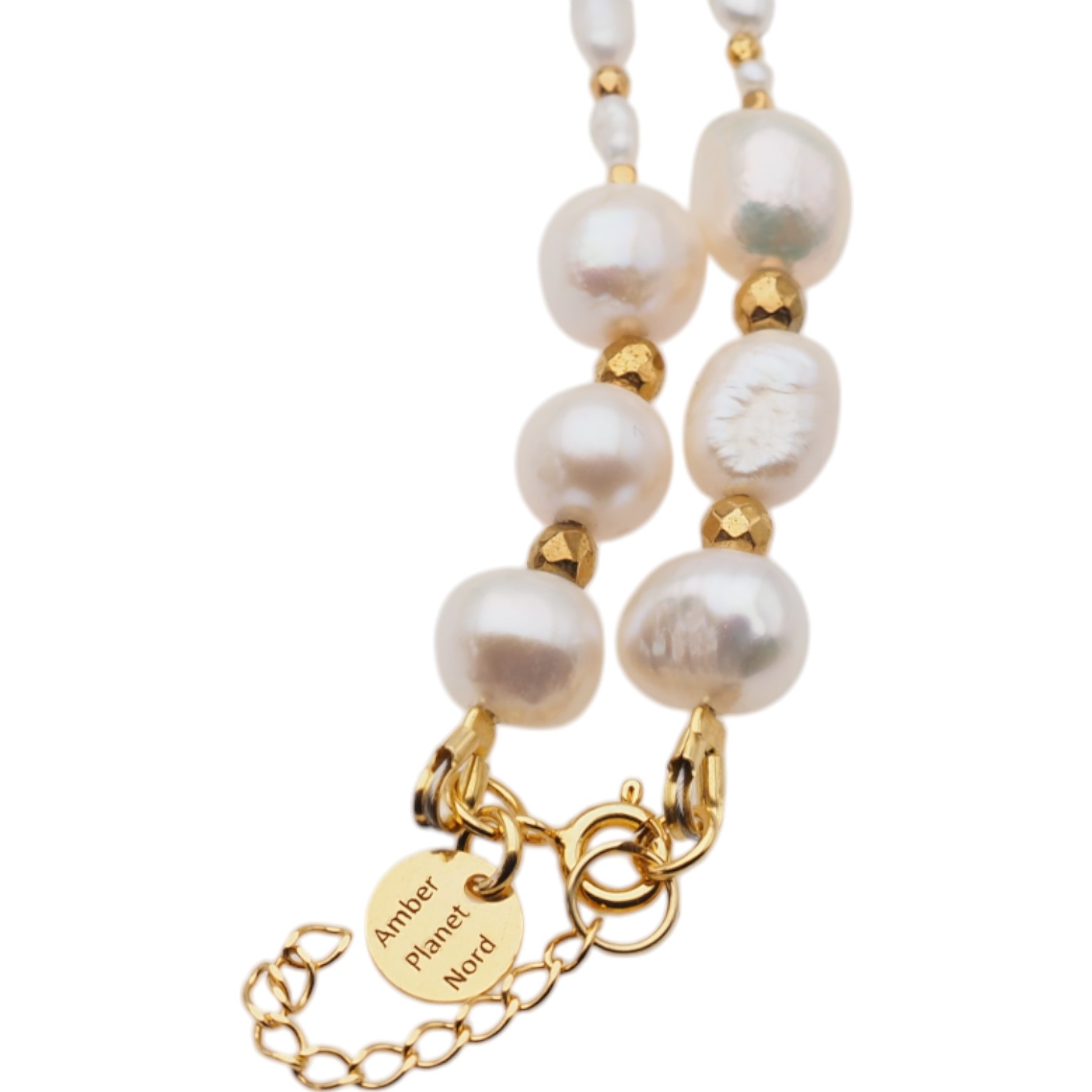 Naszyjnik z naturalnymi białymi Perłami Naturalnymi, Onyksem i Hematytem w srebrze.