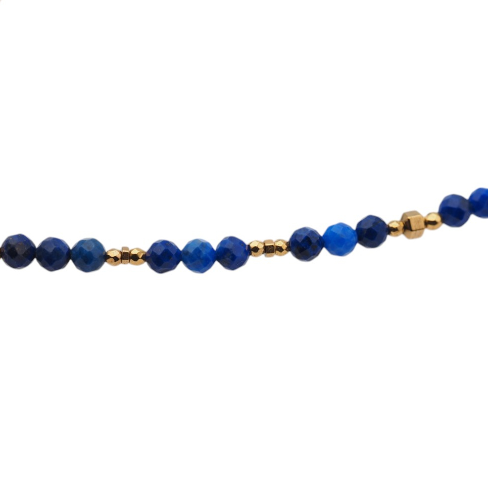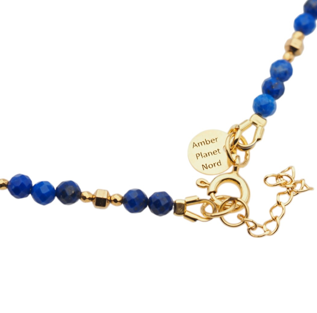 Naszyjnik Lapis Lazuli, złoty hematyt, srebro złocone próby 925.