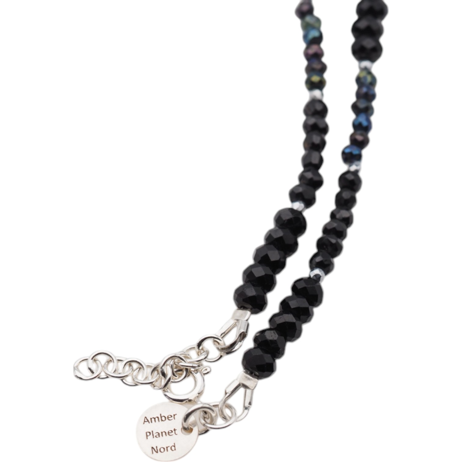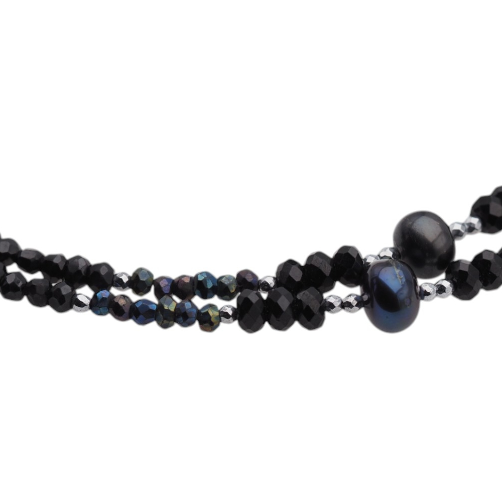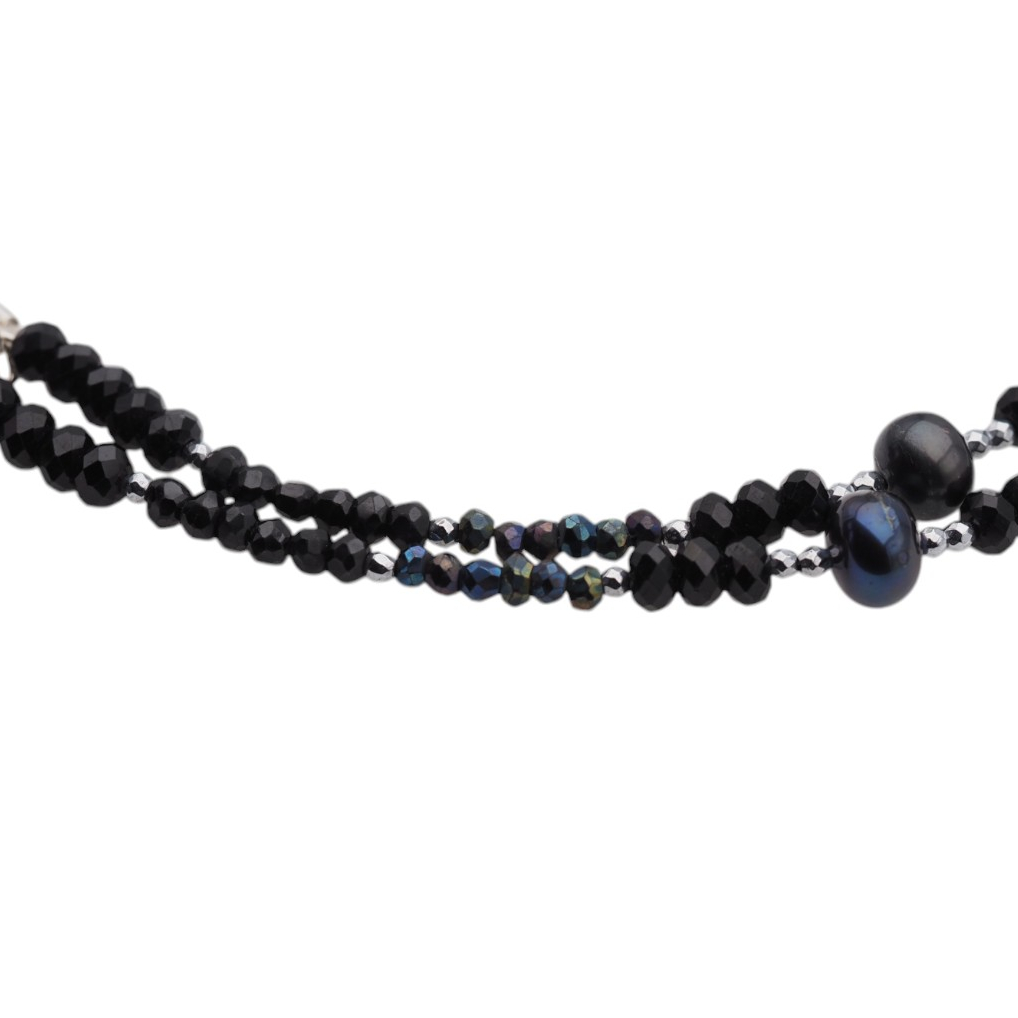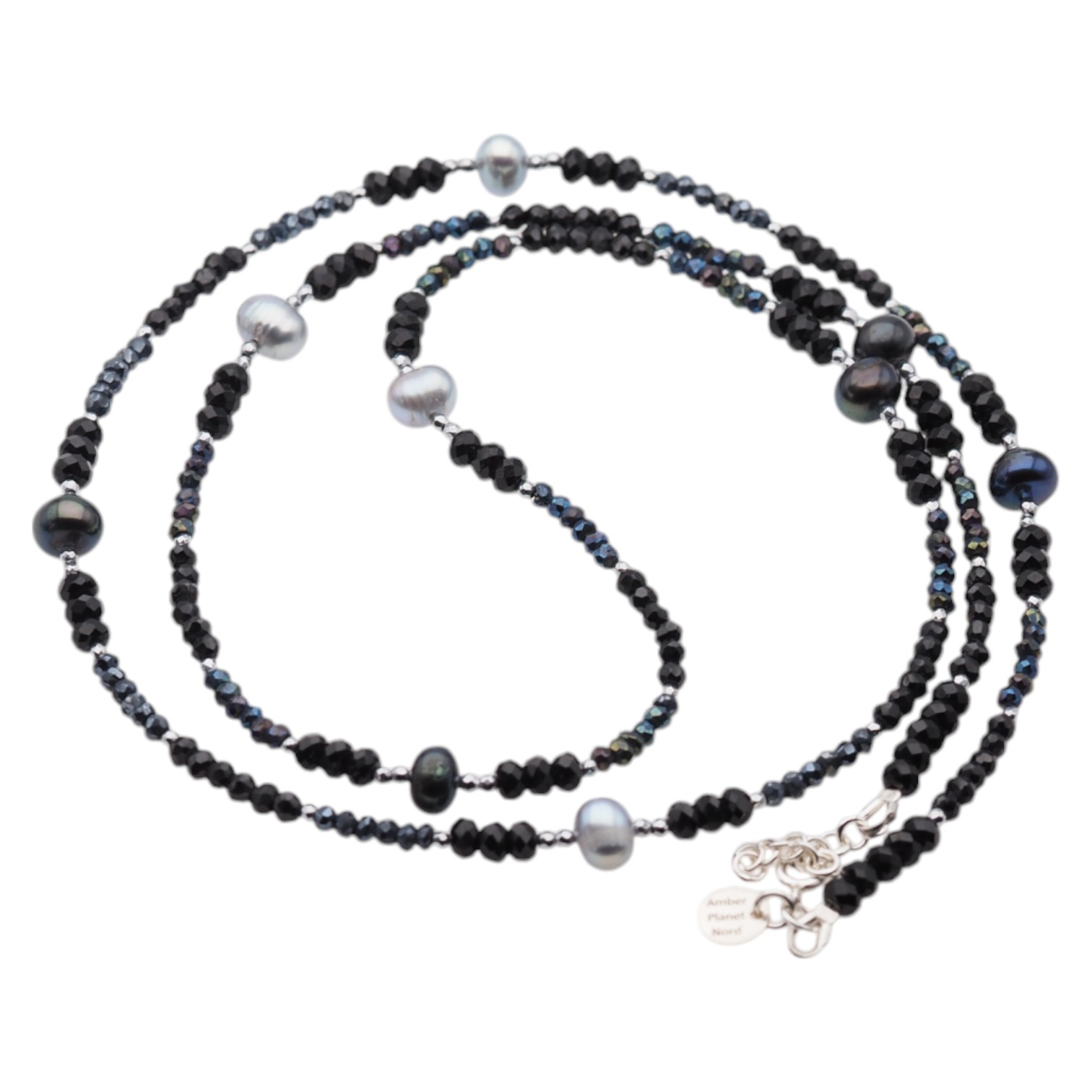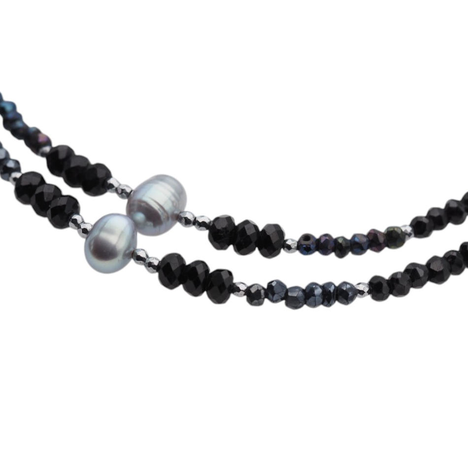 Naszyjnik z Turmalinem czarnym, Perłami Naturalnymi i Hematytem w srebrze.