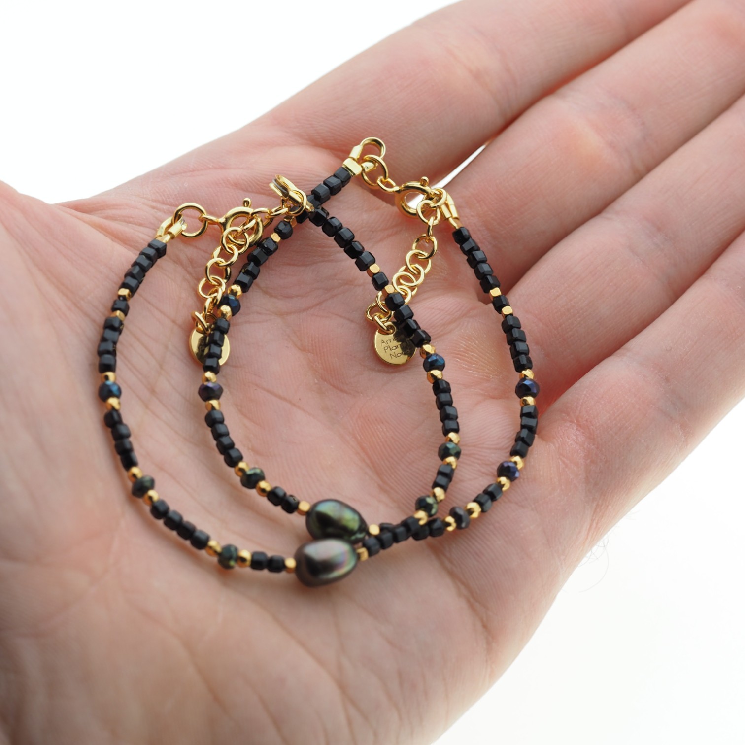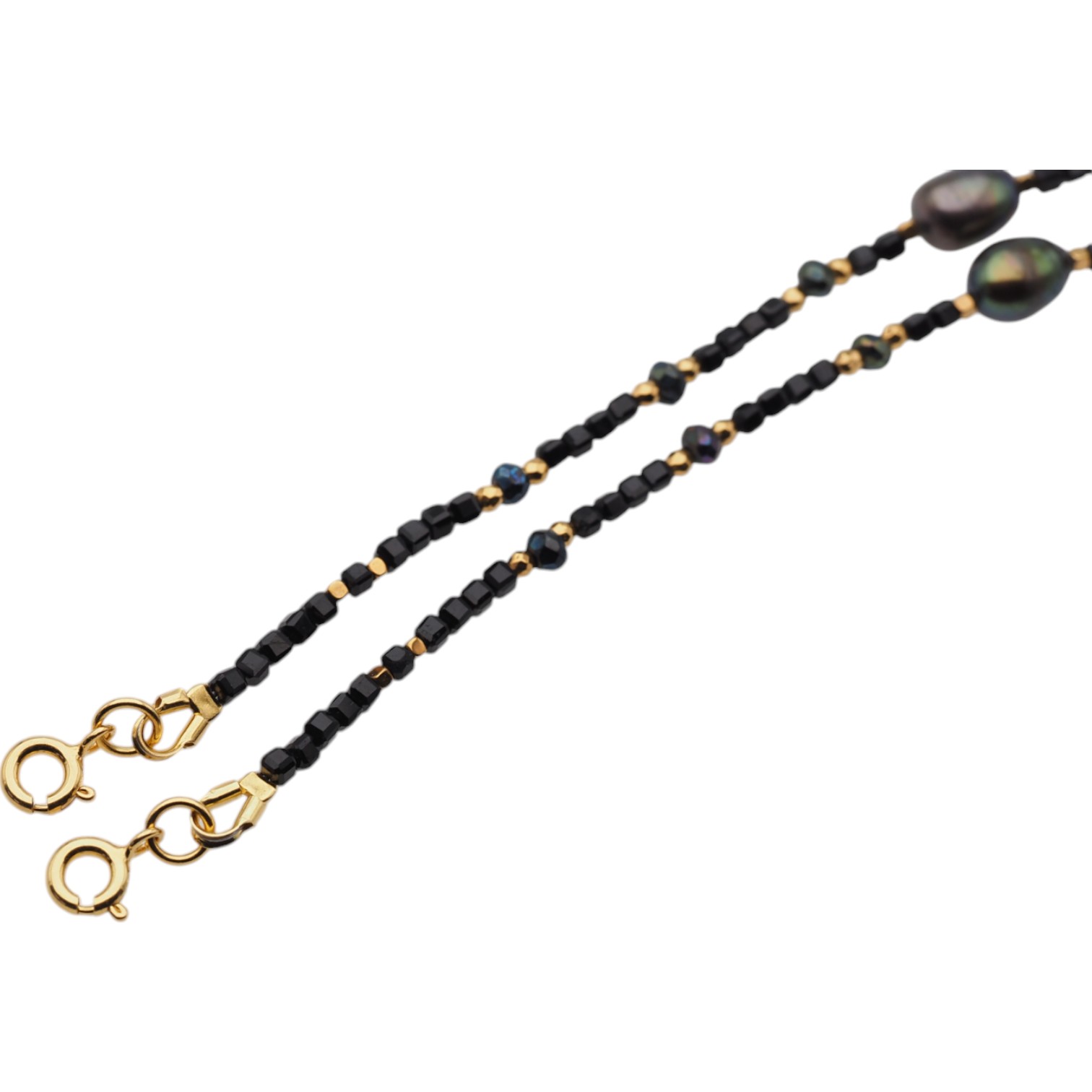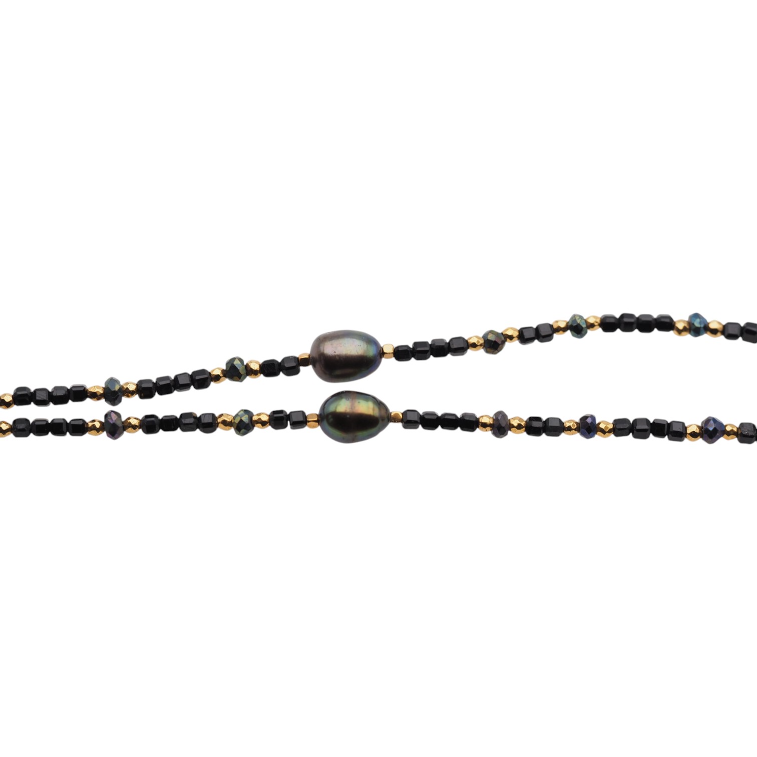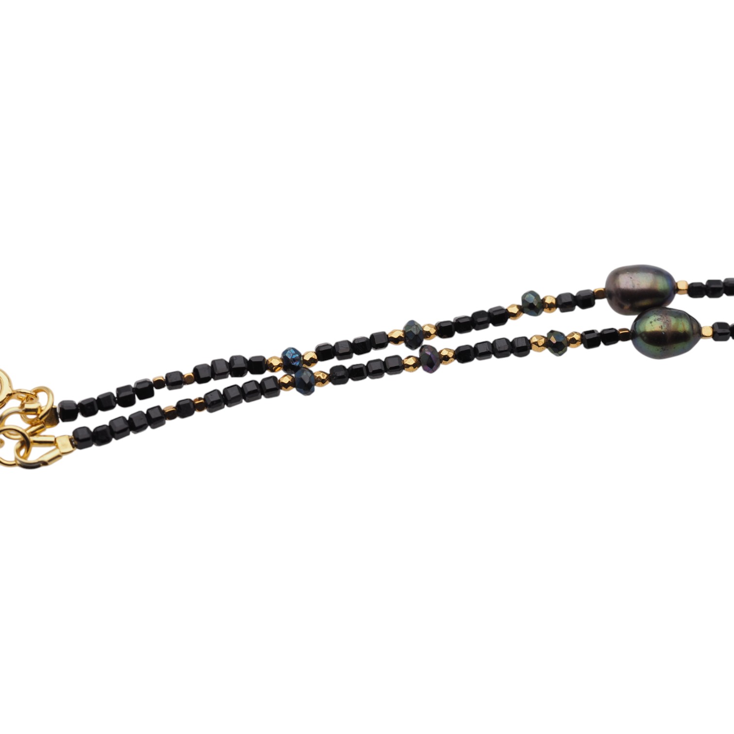 Bransoletka z Turmalinem czarnym, Perłą hodowaną i Hematytem w srebrze.