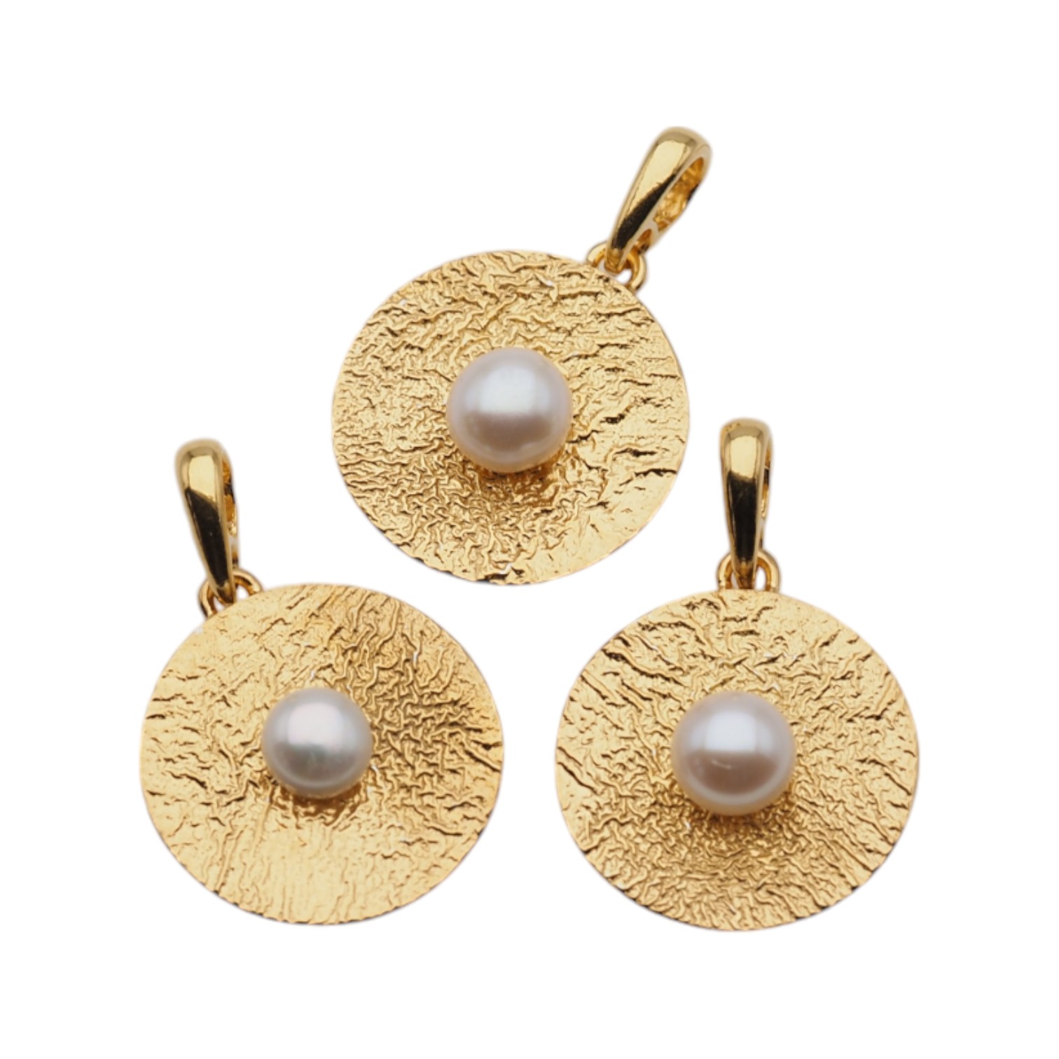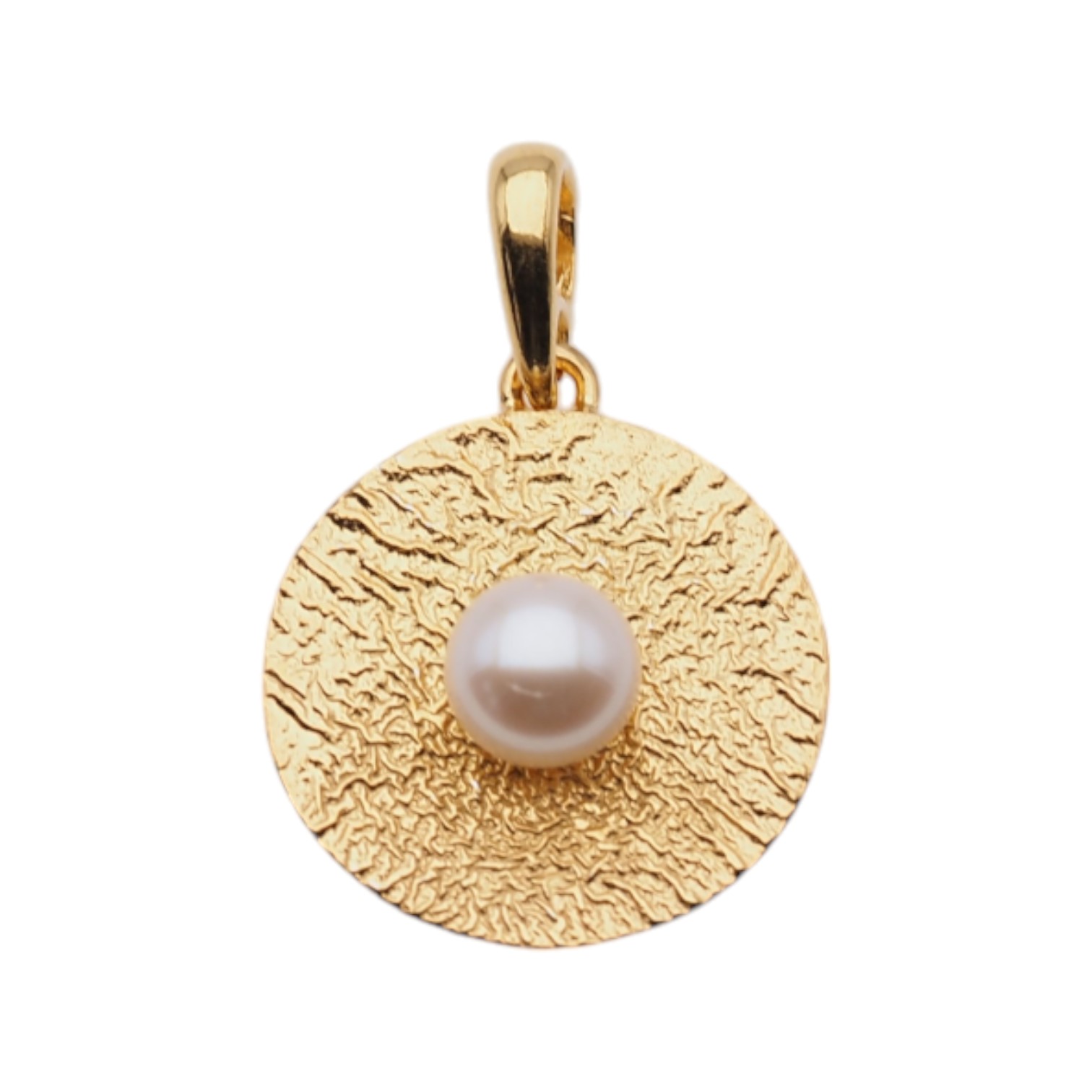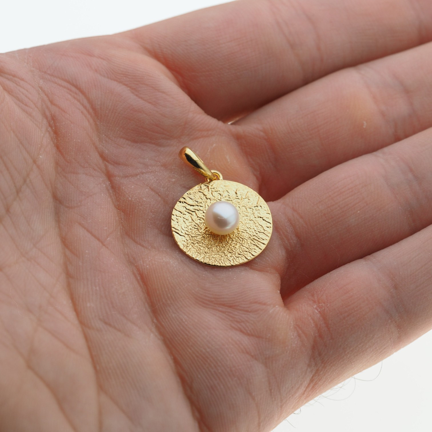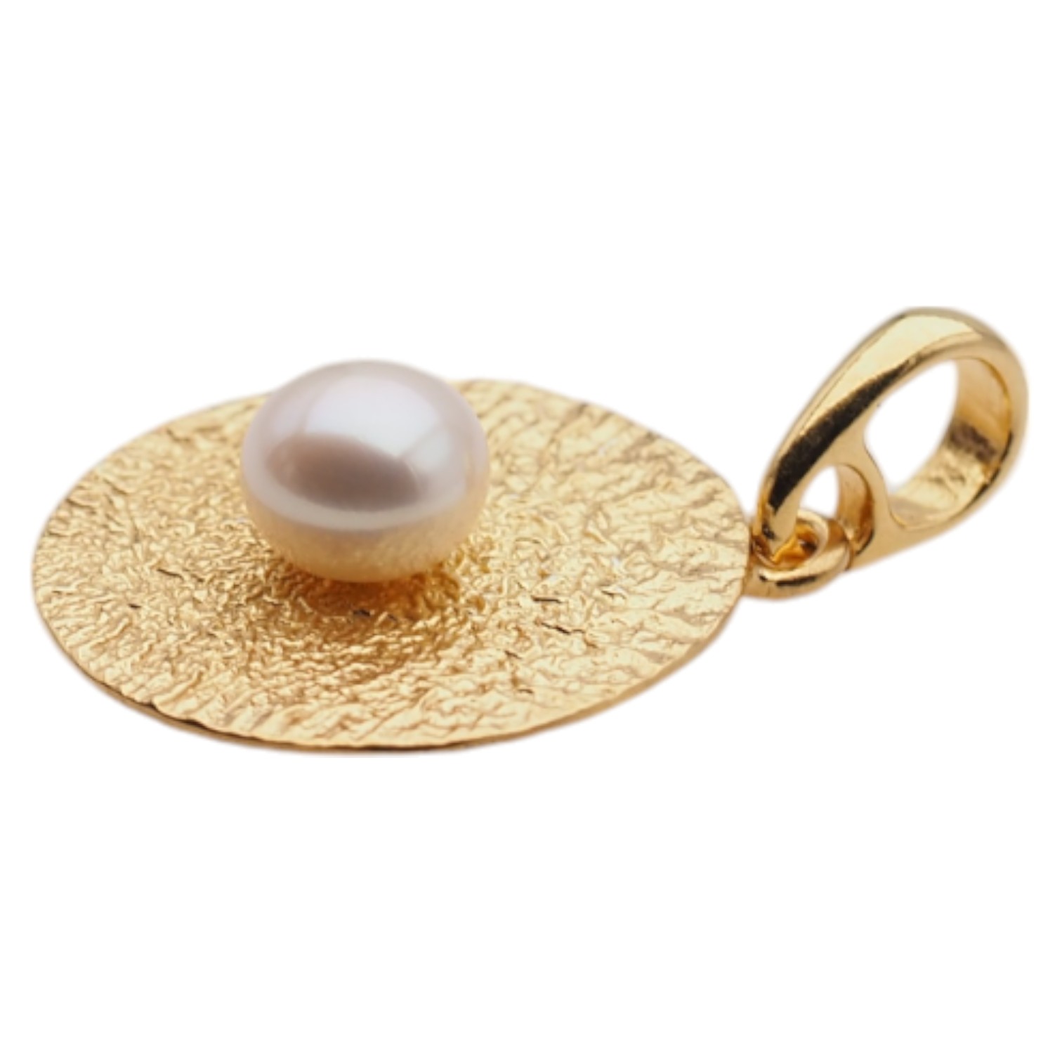 Zawieszka z białą Perłą hodowanym i złoconym srebrem młotkowanym.