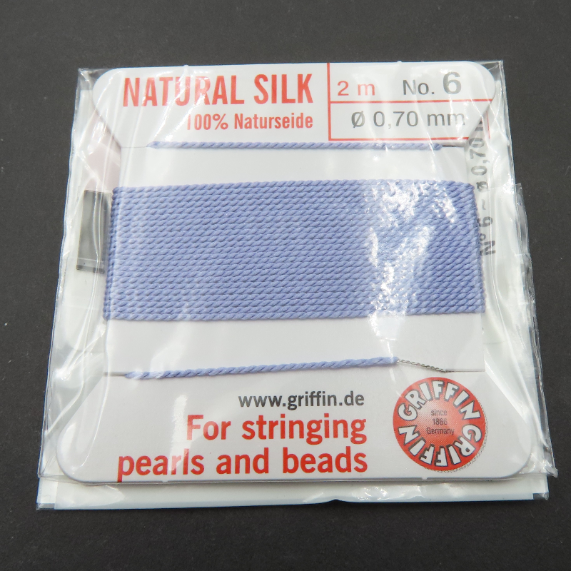 Nici jedwabne z igłą w kolorze lilac (liliowym) to estetyczny, delikatny dodatek do prac jubilerskich, który dobrze komponuje się z jasnymi kamieniami oraz pastelowymi zestawieniami barw.