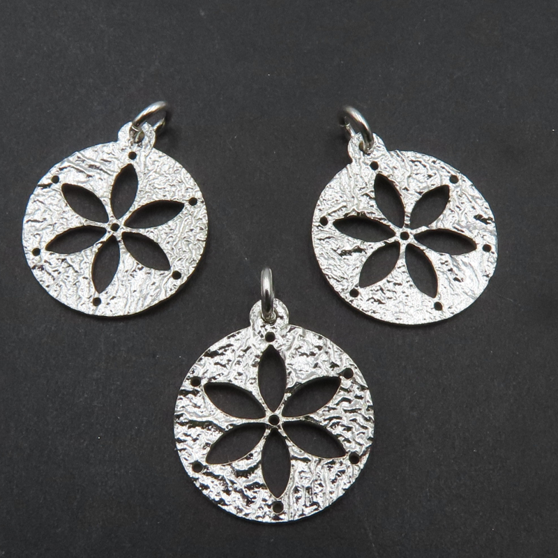 Element ozdobny, zawieszka młotkowana z motywem kwiatka.