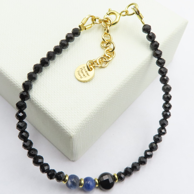 Bransoletka z Turmalinem czarnym i sodalitem w srebrze złoconym.
