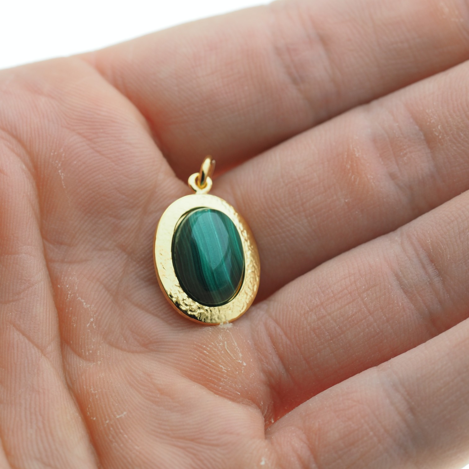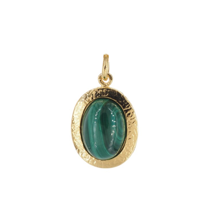 Wisiorek z Malachitem w kształcie owalnym.