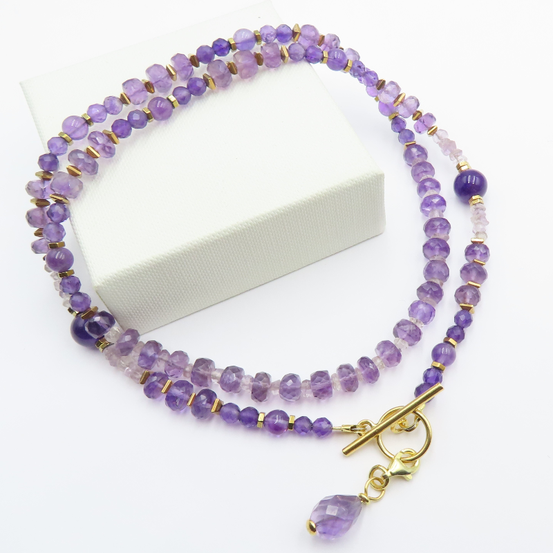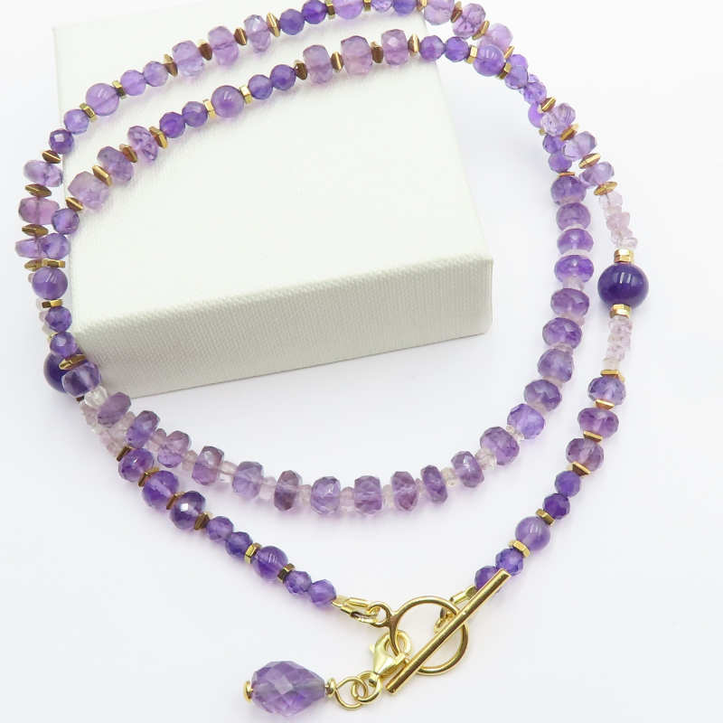 Naszyjnik Ametyst i Hematyt w srebrze złoconym.