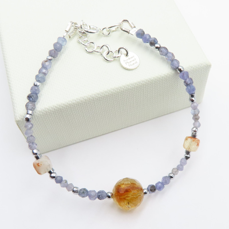 Bransoletka z Tanzanitem, Ctrynem i Hematytem w srebrze.