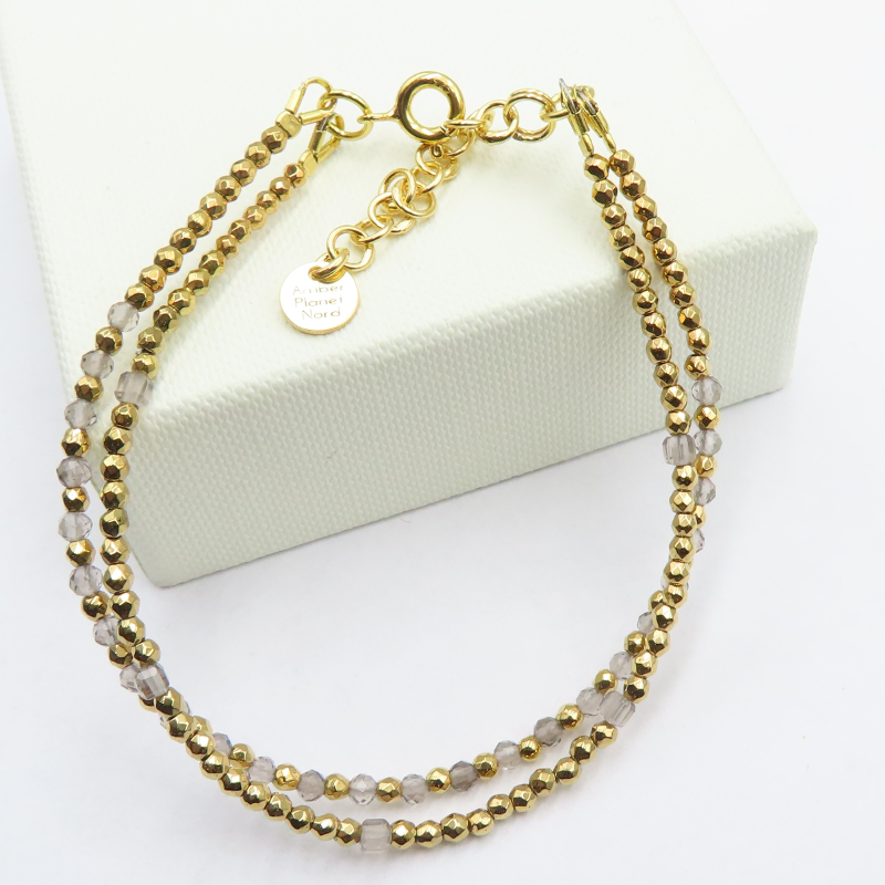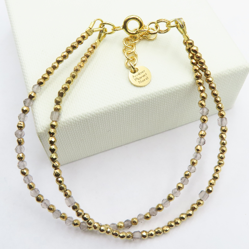 Elementy ozdobne pomiędzy kamieniami to złoty hematyt.
