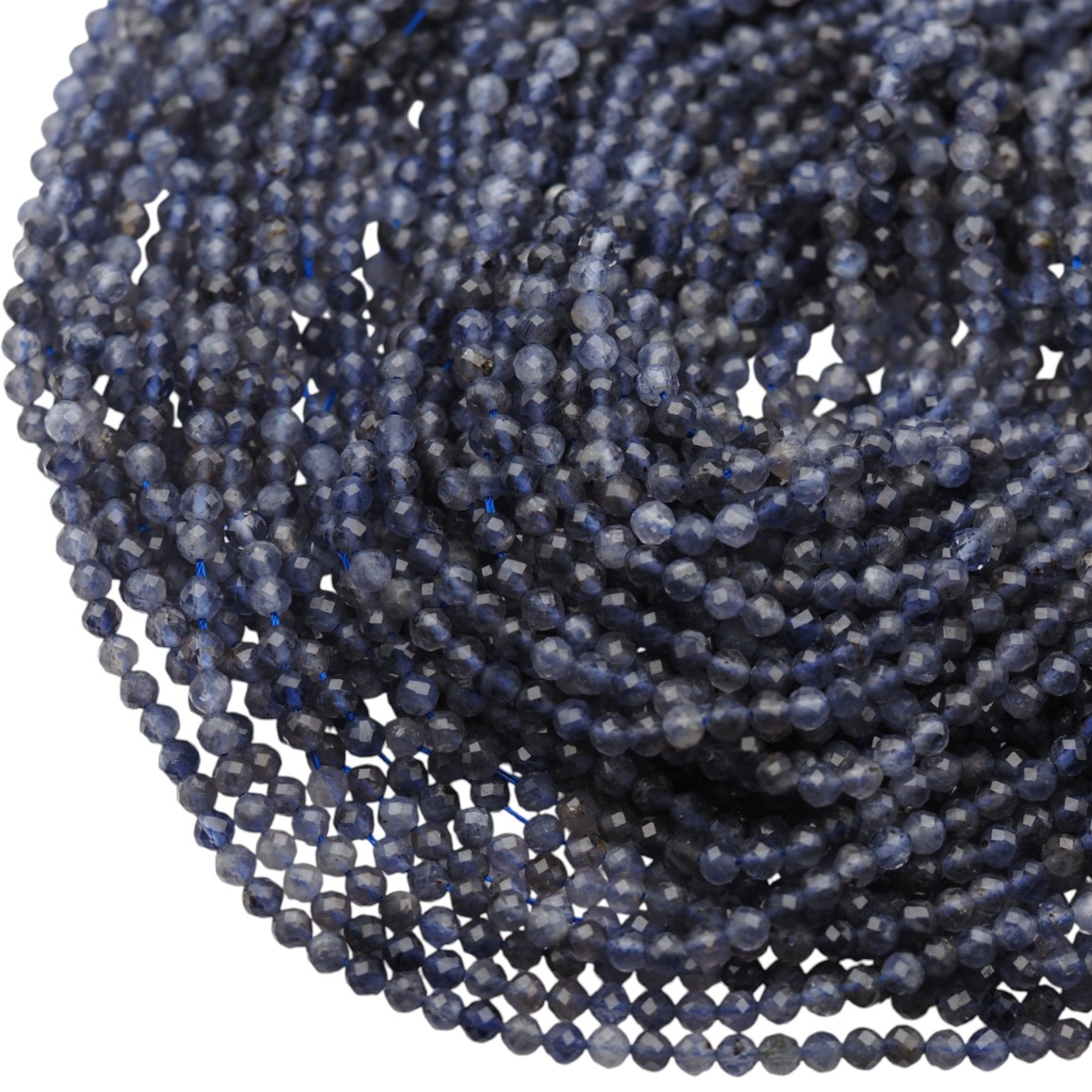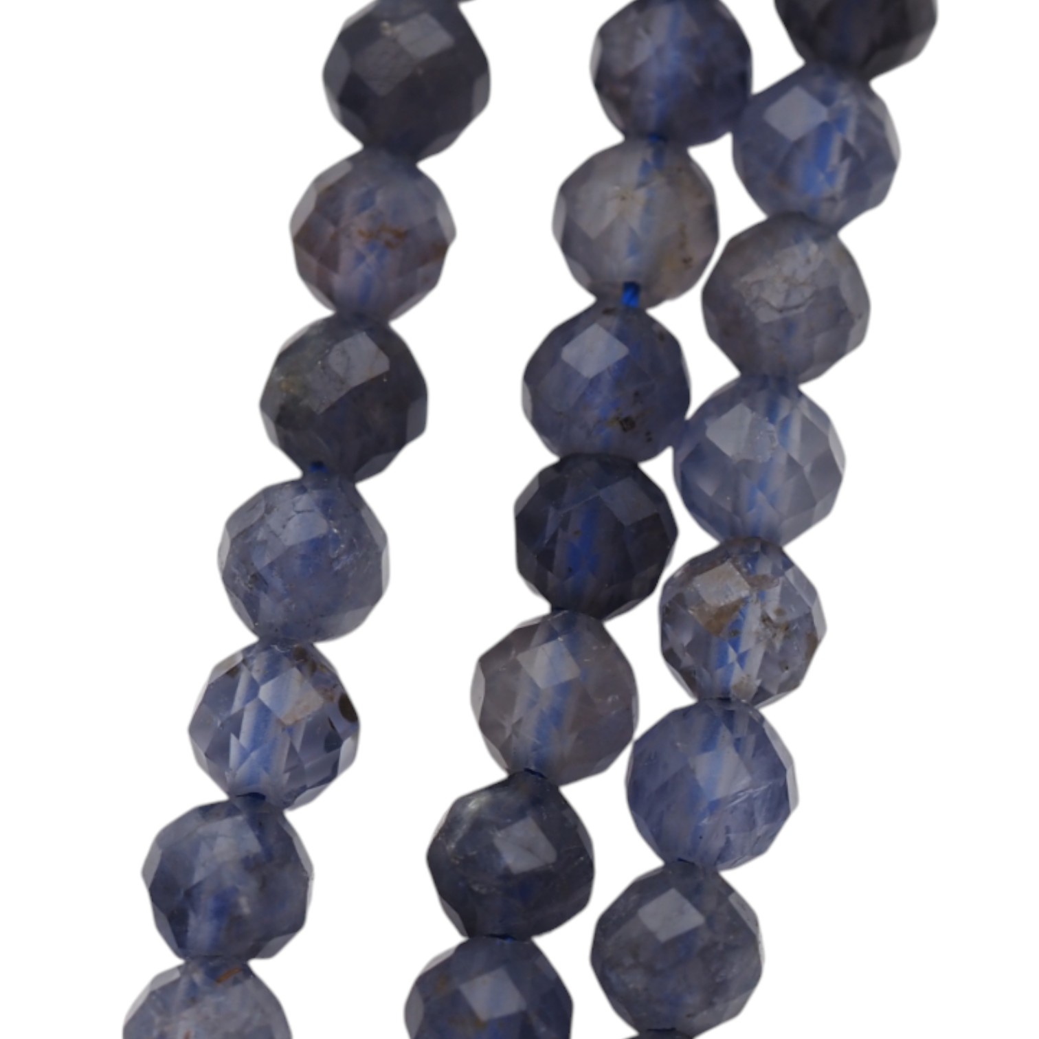 Naturalny iolit w formie drobnych, fasetowanych kulek to elegancki materiał o subtelnym blasku. Kamień zwykle prezentuje chłodną gamę barw — od zgaszonych błękitów po fiolety — dzięki czemu dobrze wygląda zarówno solo, jak i w zestawieniach z metalami i innymi minerałami.