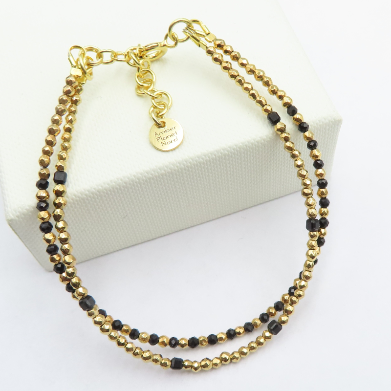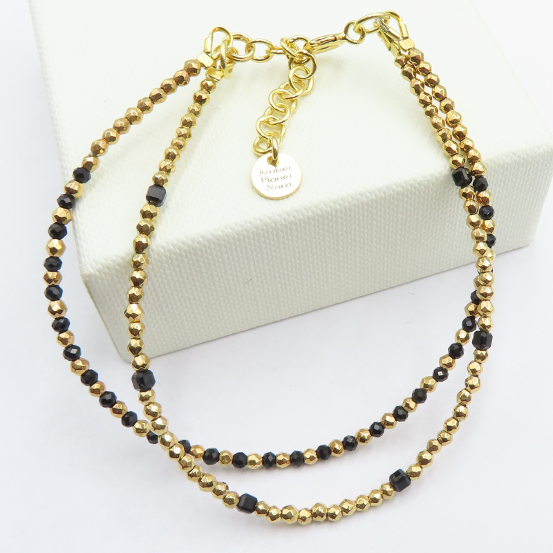 Podwójna Bransoletka Czarny Turmalin i Hematyt.
