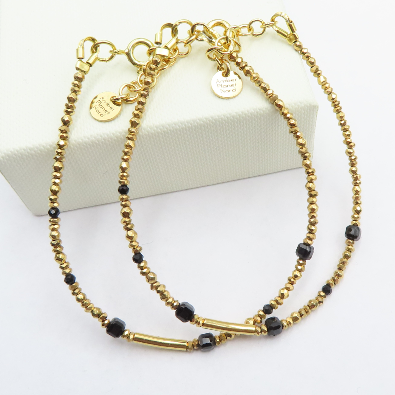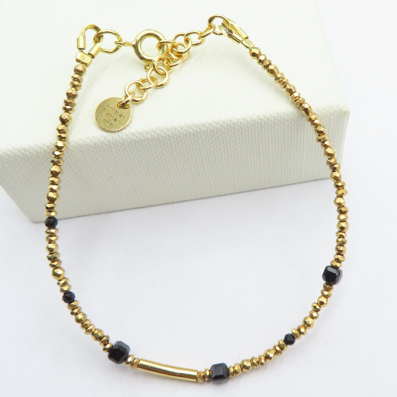 Bransoletka SPINEL, TURMALIN i Hematyt w srebrze złoconym.
