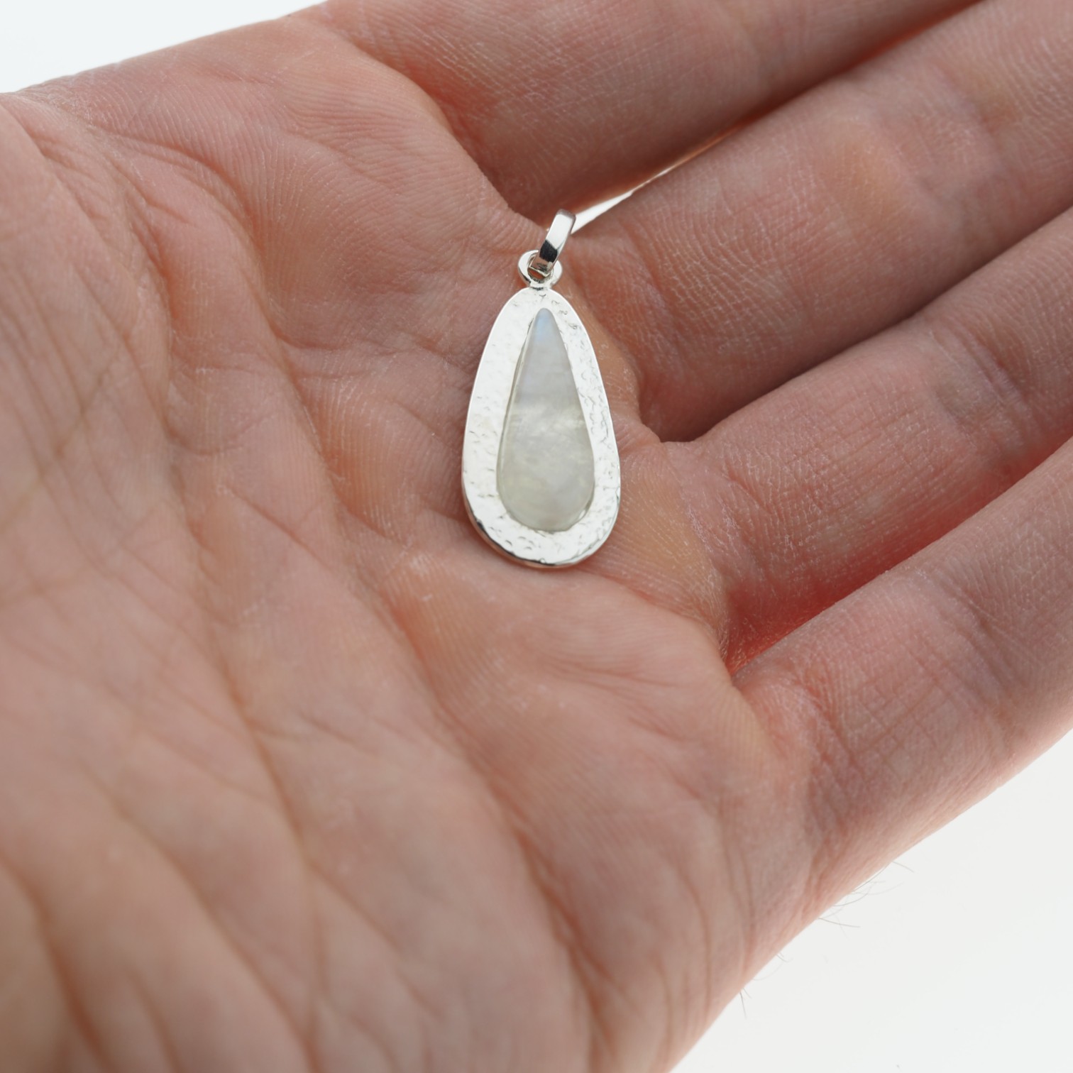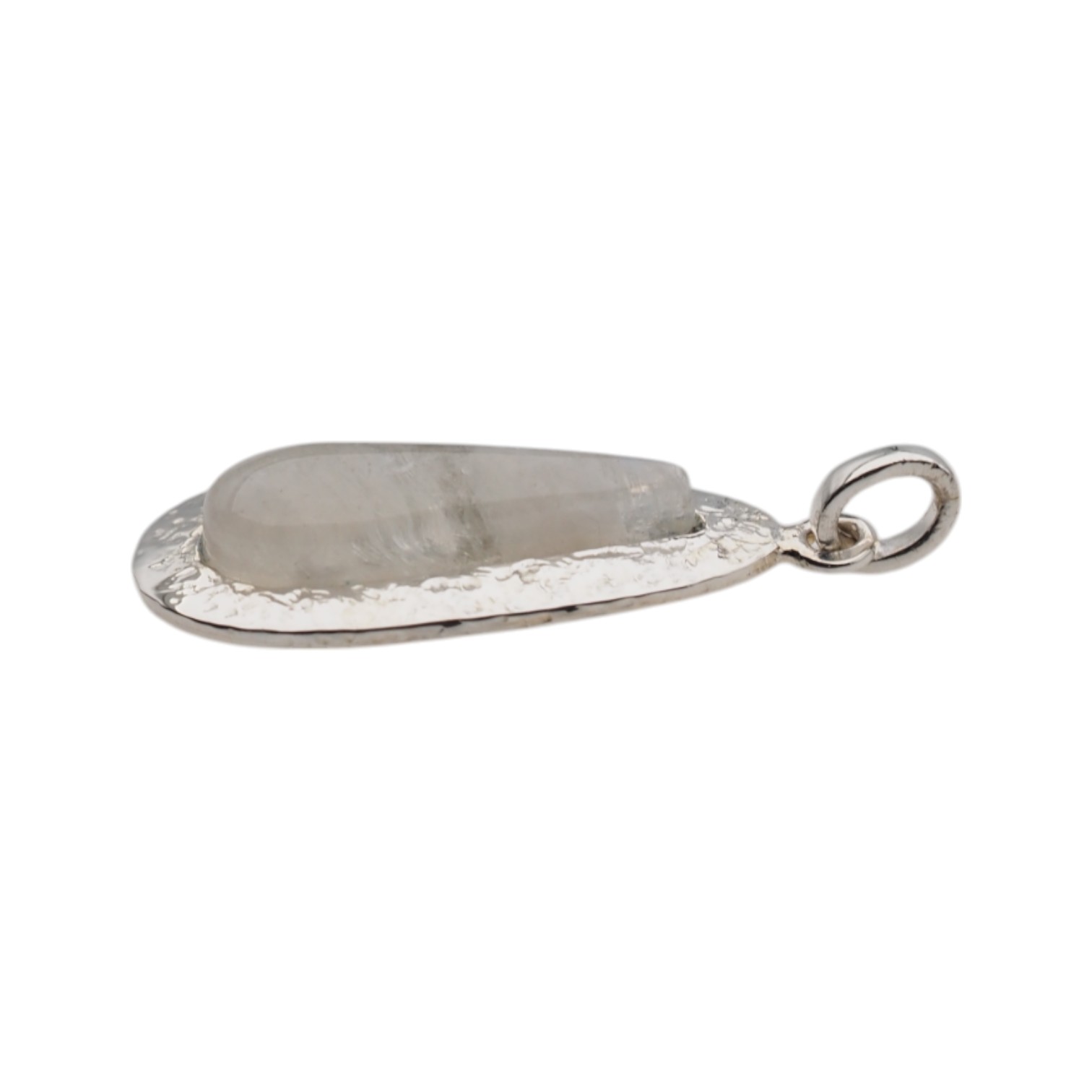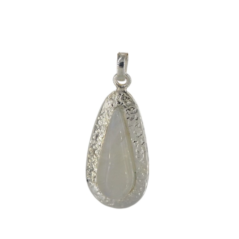 Naturalny Kamień Księżycowy i srebro młotkowane - wisiorek.