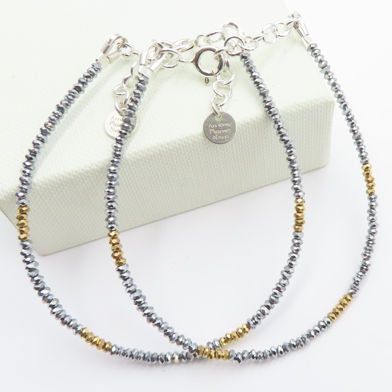 Bransoletka ręcznie zrobiona na stalowej lince jubilerskiej.