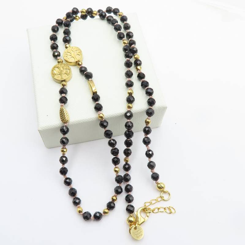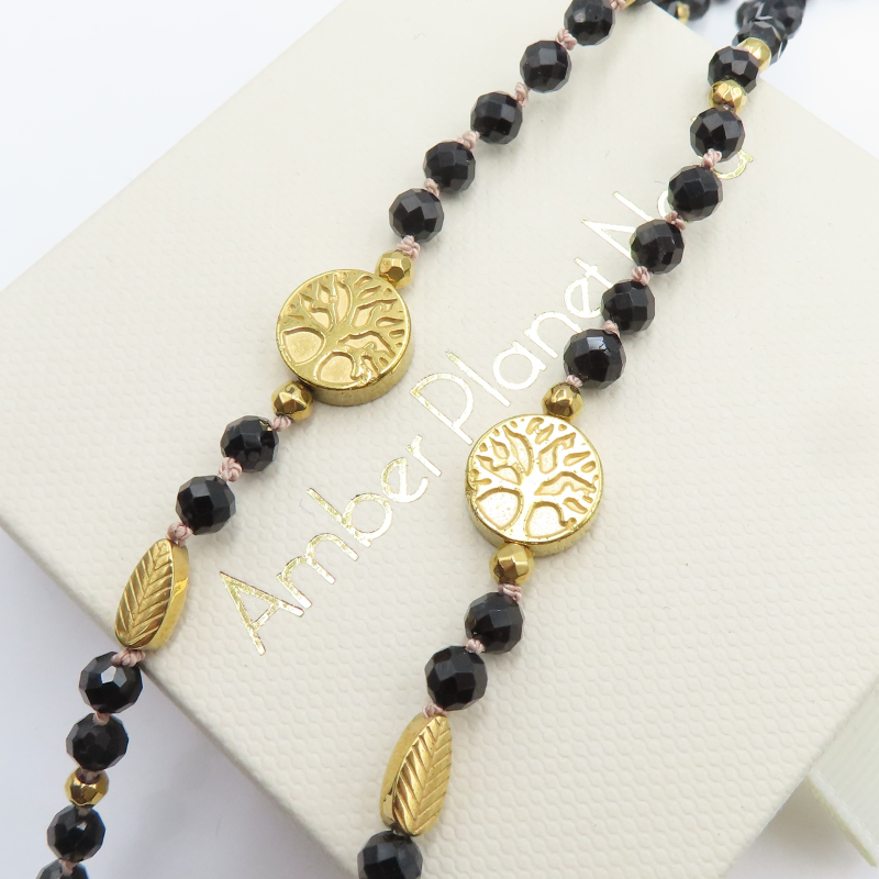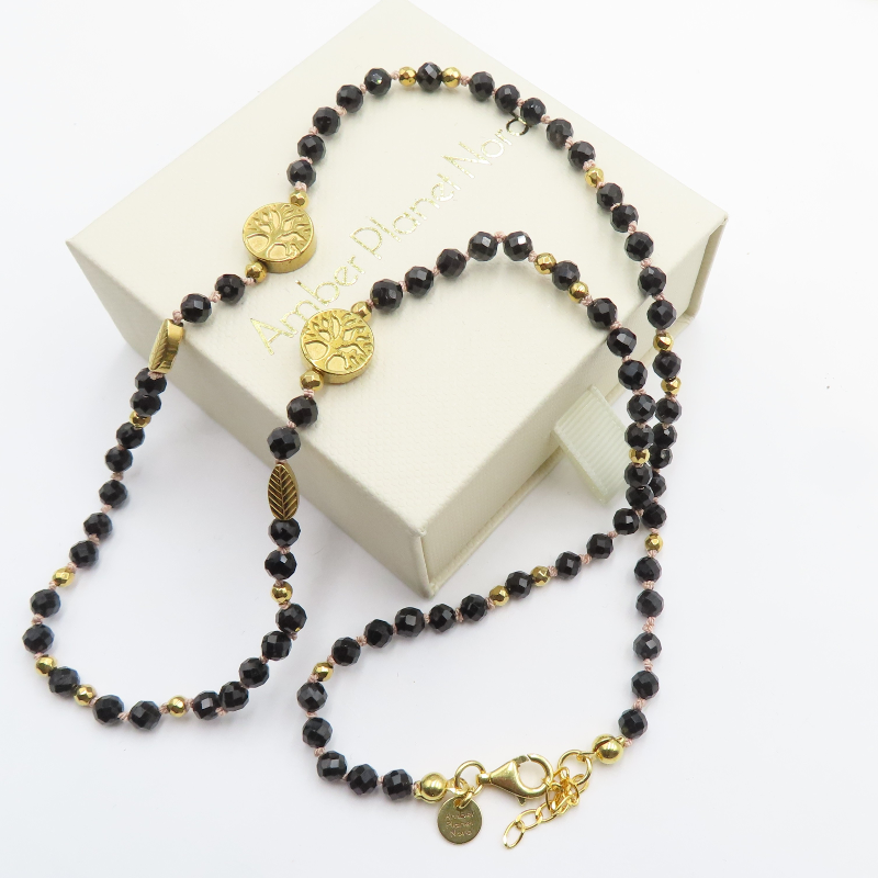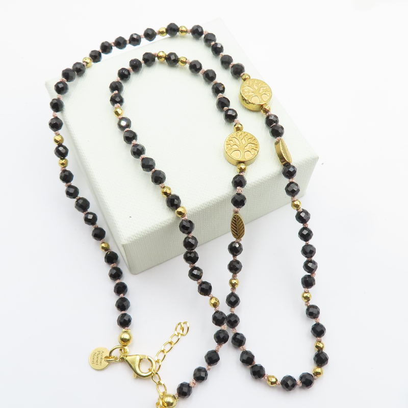 Naszyjnik z Czarnym Turmalinem i Hematytem w srebrze złoconym.