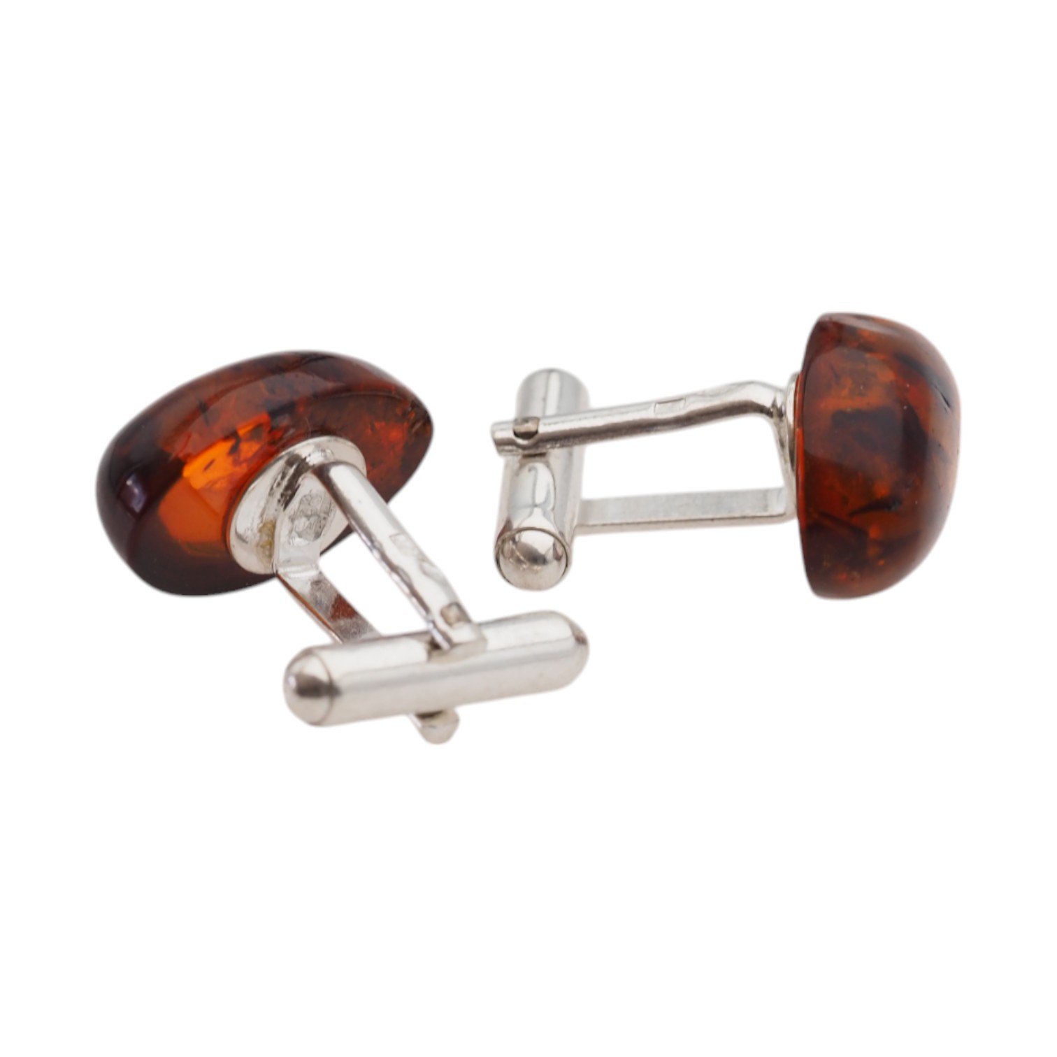 Spinki do mankietów stworzone ręcznie z koniakowym Bursztynem w kształcie owalnym.