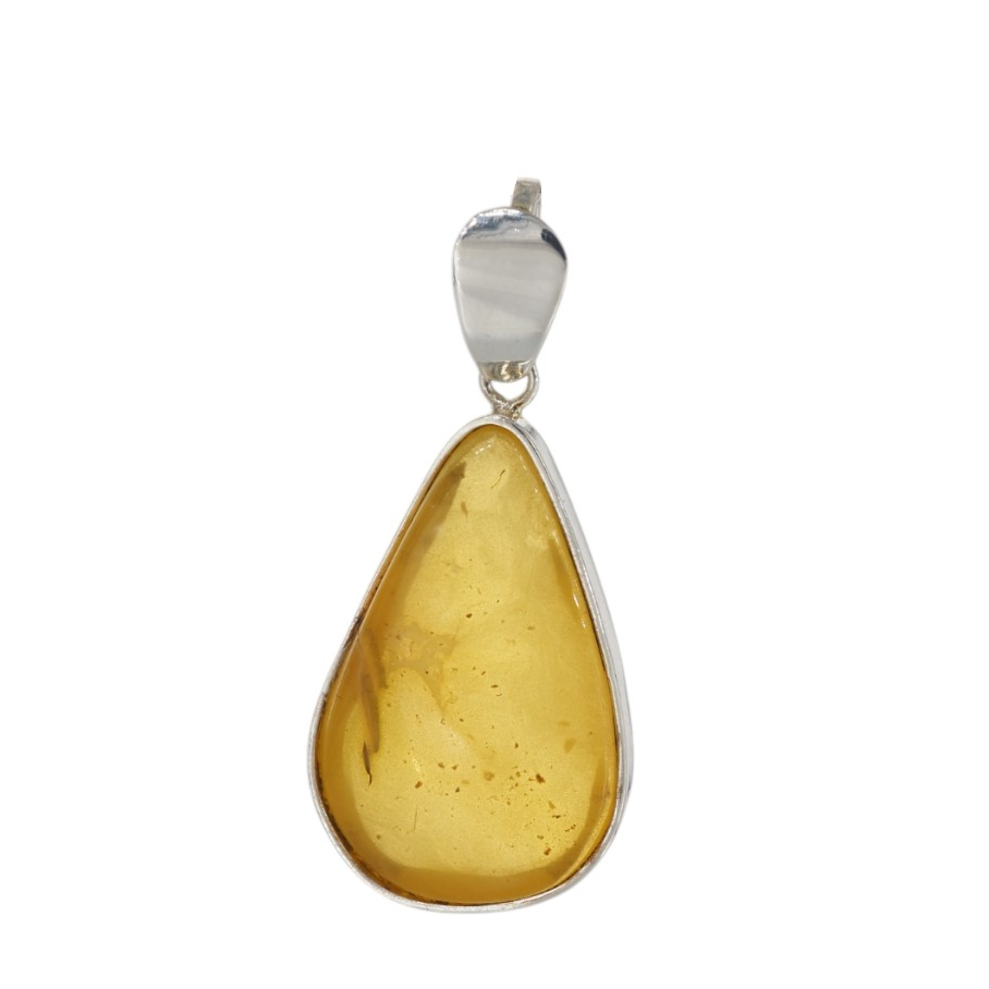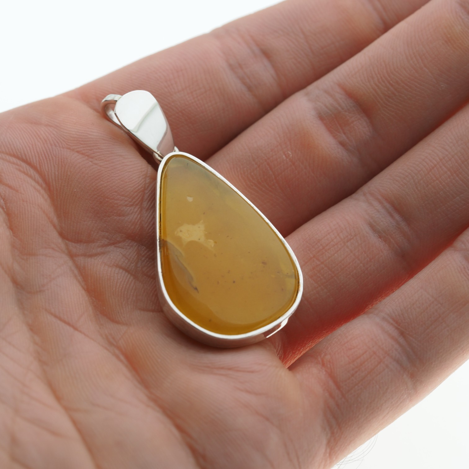 Mleczny Bursztyn i srebro - zawieszka łza