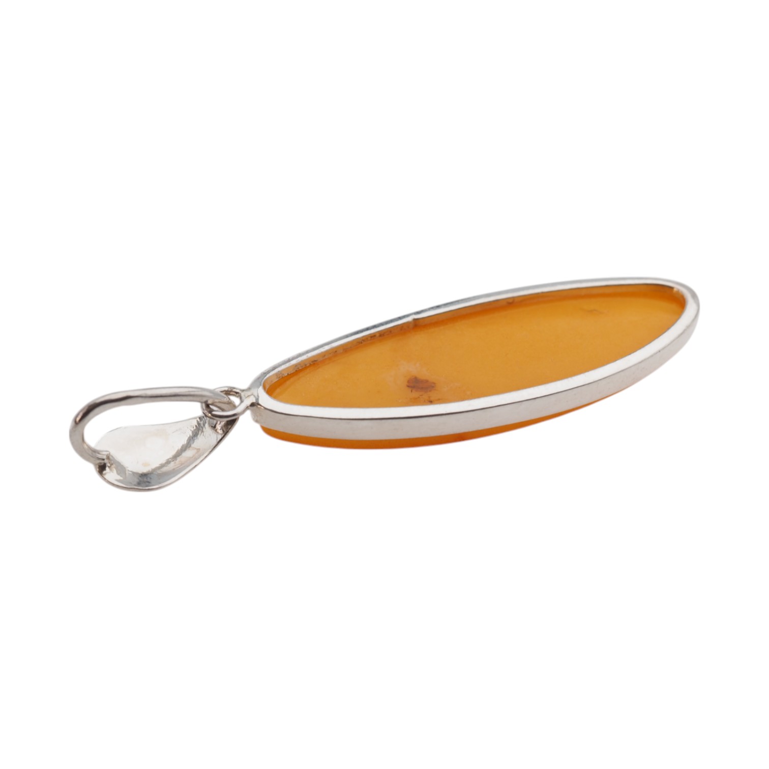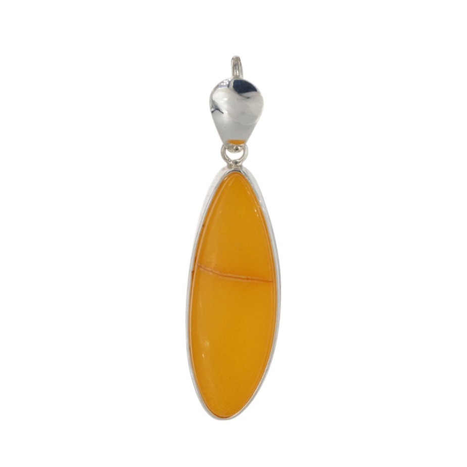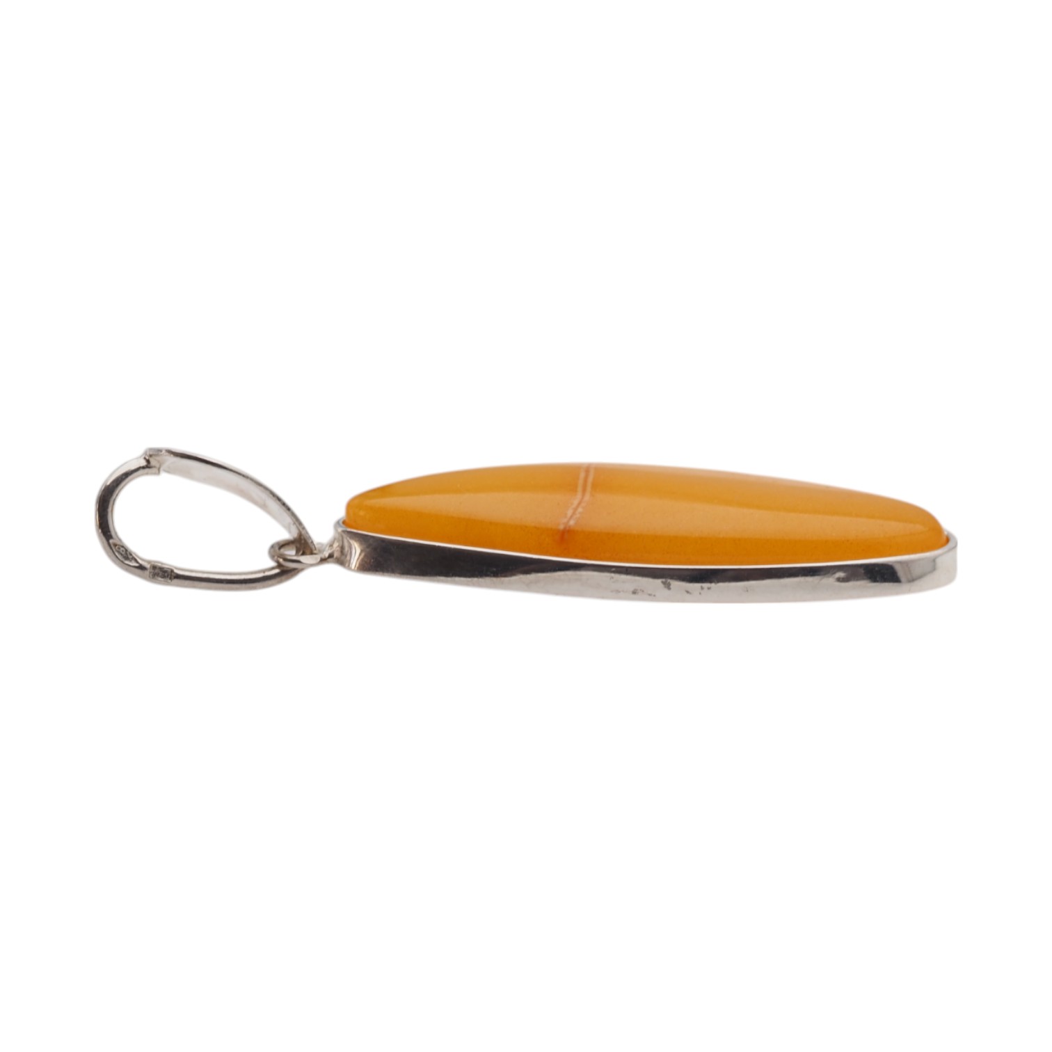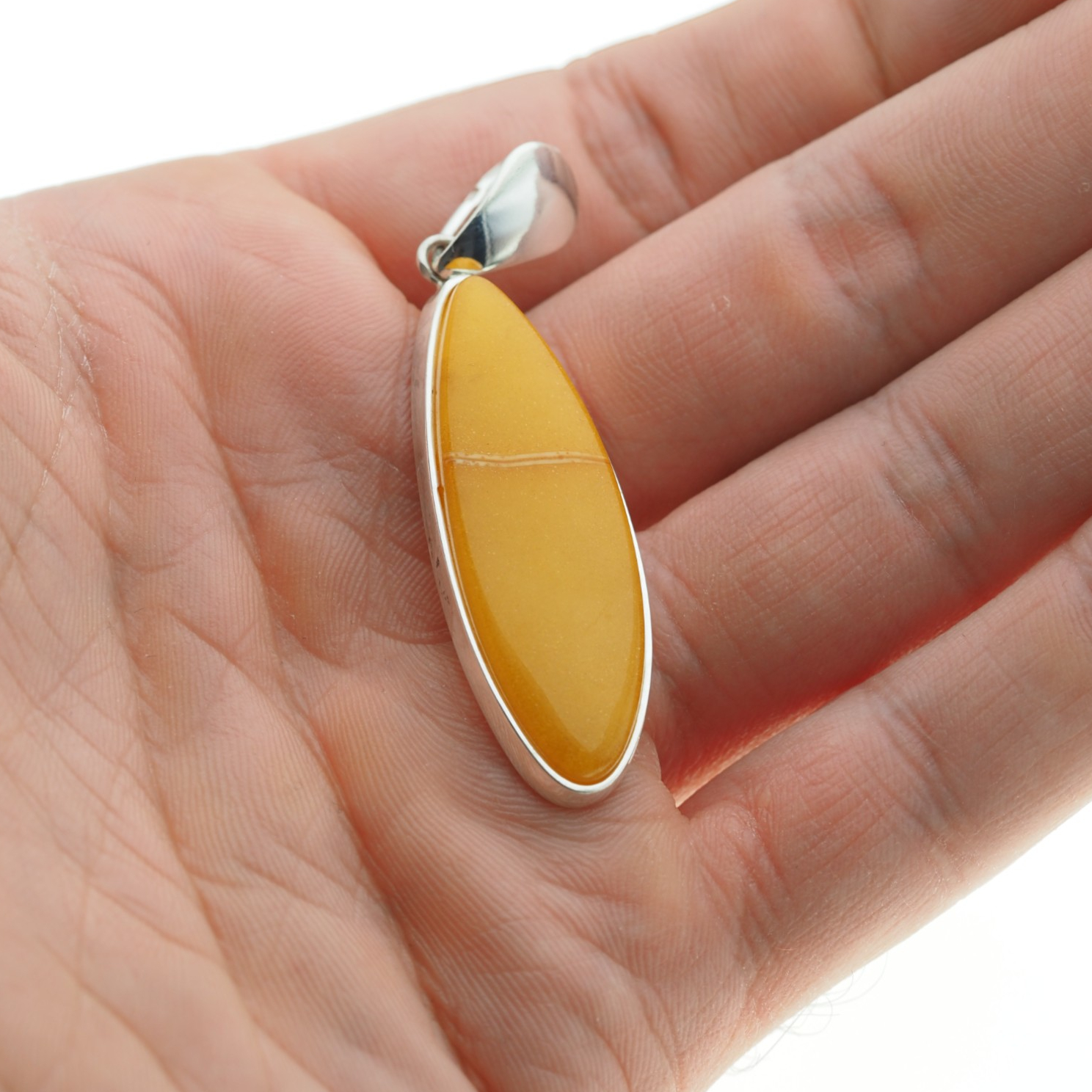 Ręcznie wykonana zawieszka z bursztynem mlecznym w formie markizy przyciąga uwagę jasną, kremową barwą i subtelną, naturalną głębią. Kamień został osadzony w srebrnej oprawie, co nadaje całości elegancki, jubilerski charakter i podkreśla delikatne tony bursztynu.