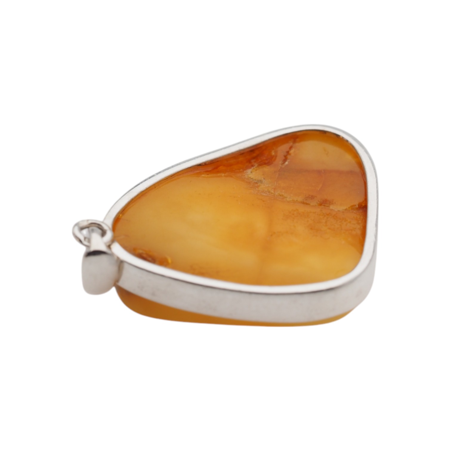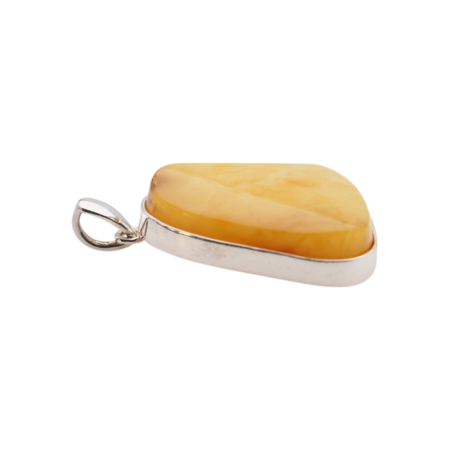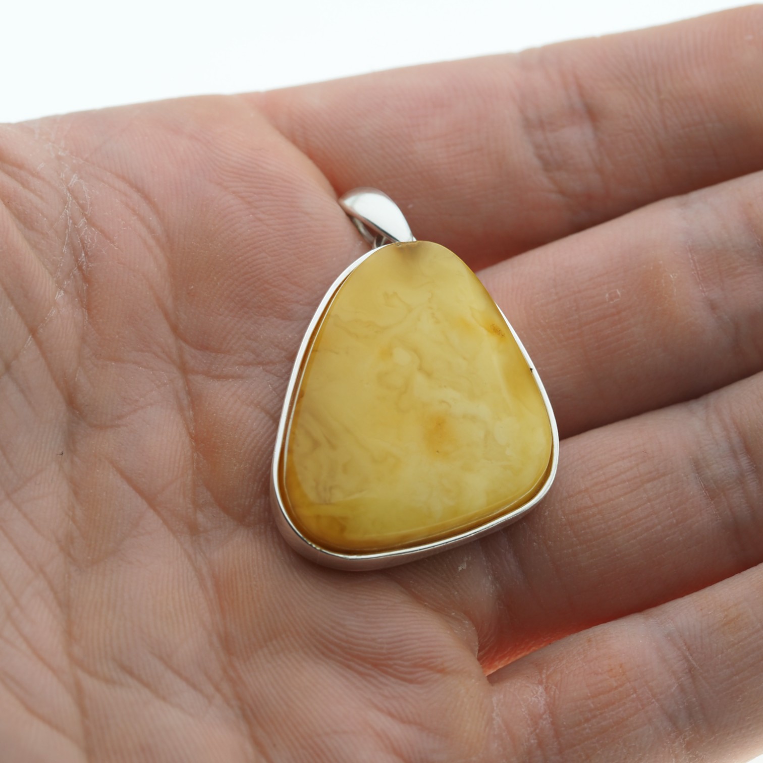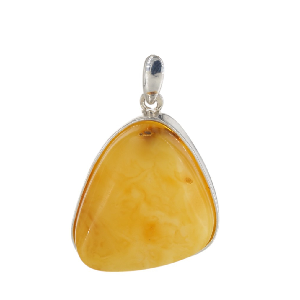 Ręcznie wykonana zawieszka z mlecznym bursztynem bałtyckim przyciąga uwagę jasną, kremowo-miodową barwą i miękkim, naturalnym światłem kamienia. Bursztyn został osadzony w srebrnej oprawie, co podkreśla jego subtelny charakter i nadaje całości eleganckie, jubilerskie wykończenie.