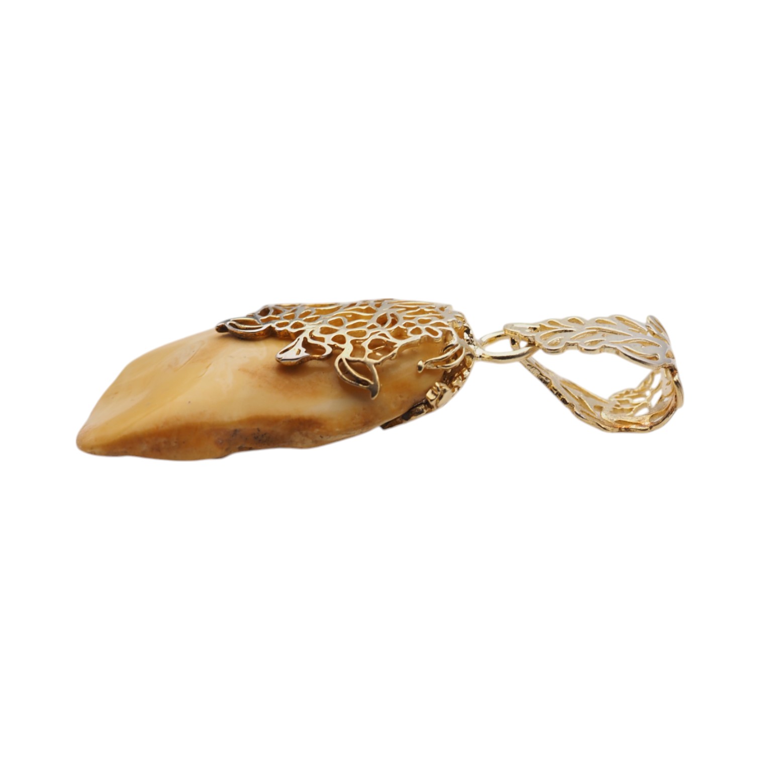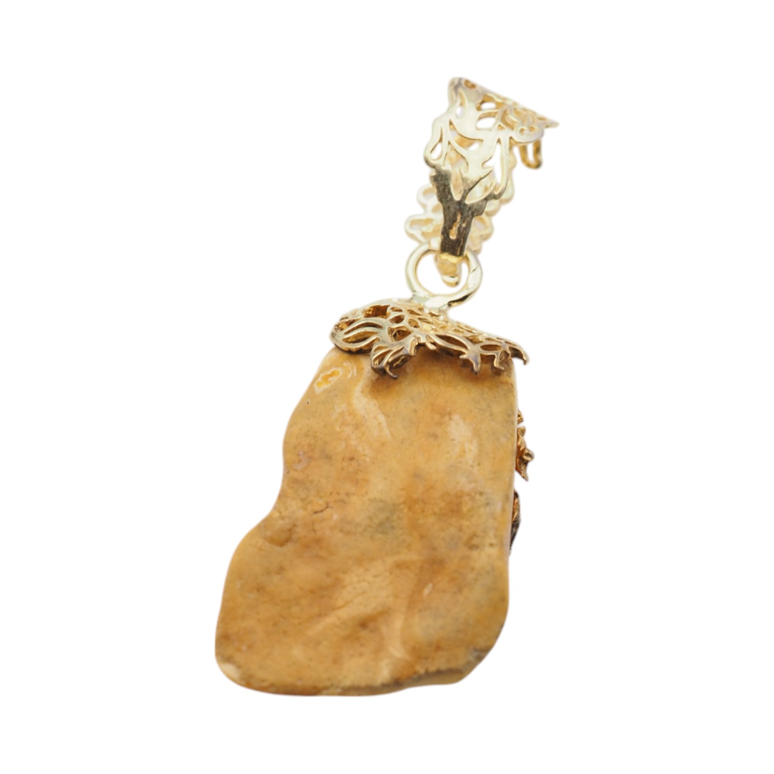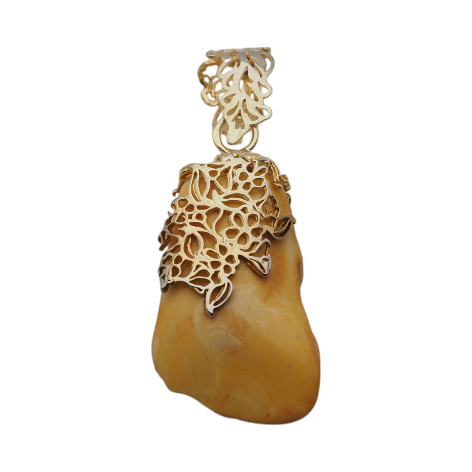 Ręcznie wykonana zawieszka z naturalnego bursztynu mlecznego (bałtyckiego) w surowej formie, częściowo polerowanej. Kamień ma organiczny, niepowtarzalny charakter – jego jasna, mleczna barwa i naturalna faktura pięknie kontrastują ze srebrną oprawą.