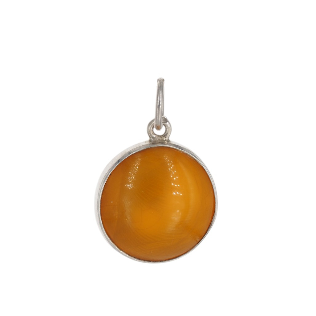 Mleczny Bursztyn i srebro - zawieszka okrągła
