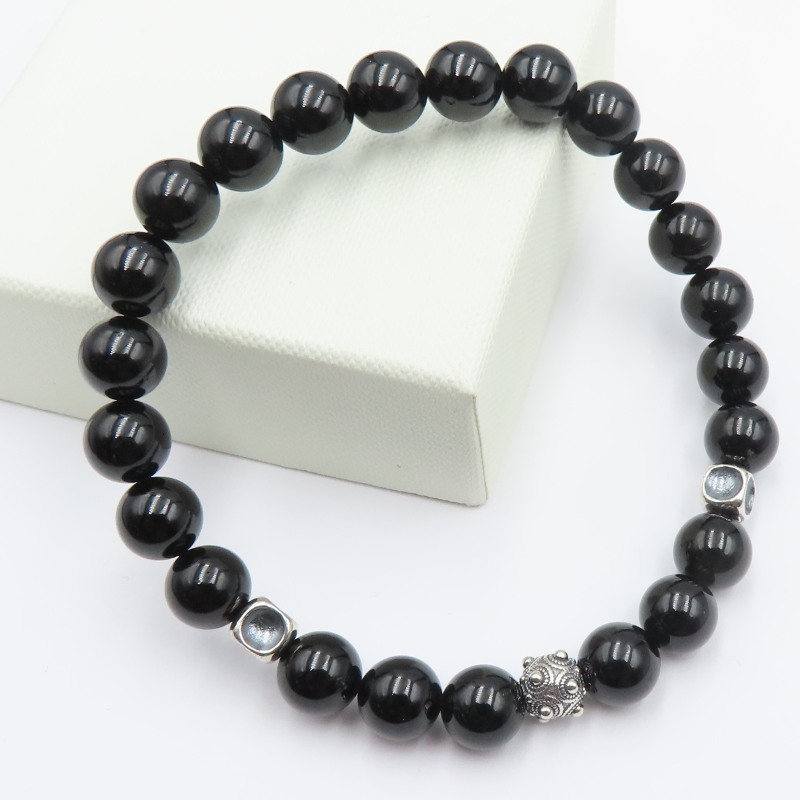 Bransoleta MĘSKA - Turmalin Czarny i srebrna oksydowane.
