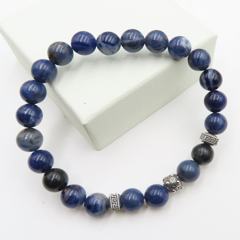 Bransoleta MĘSKA - Sodalit i srebrna oksydowane.