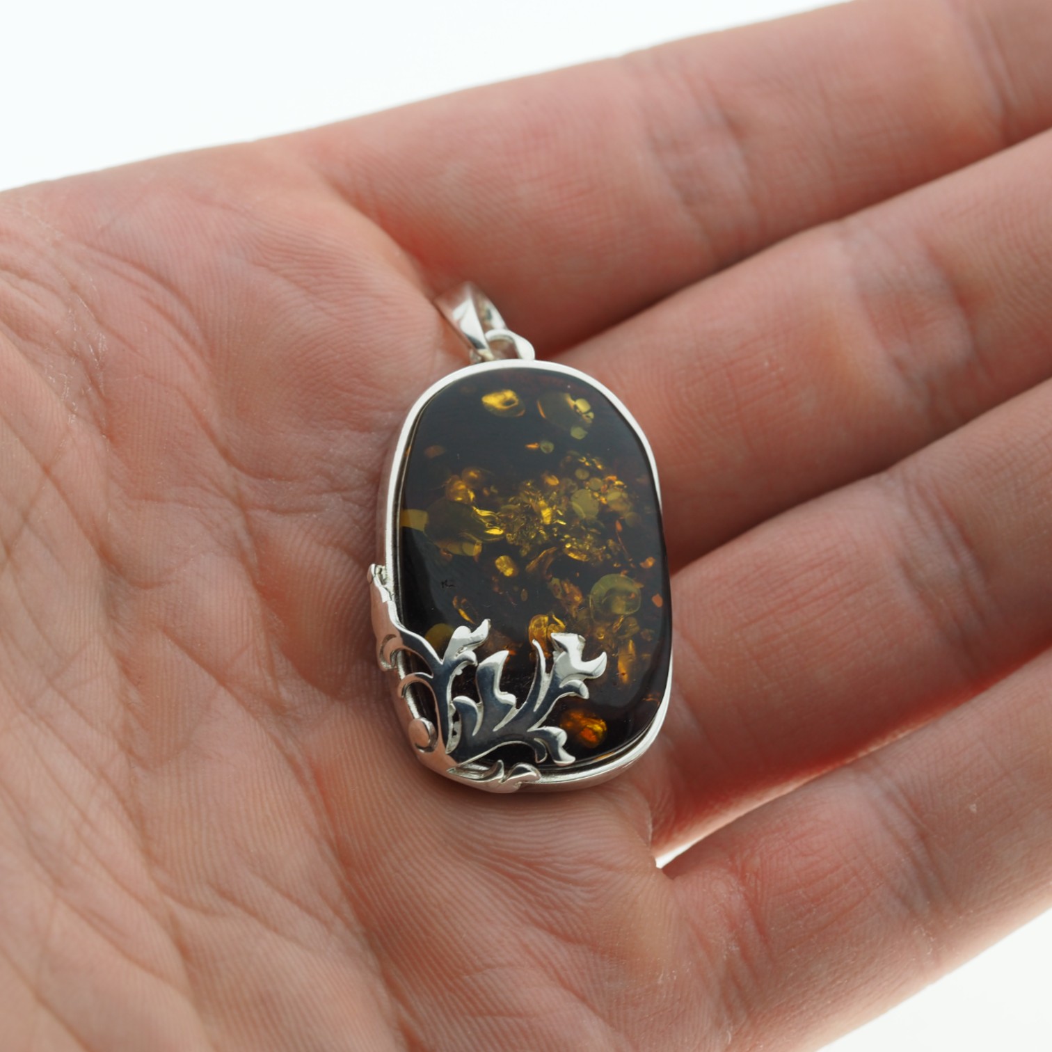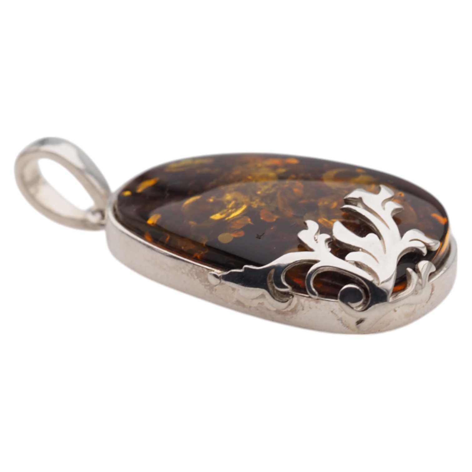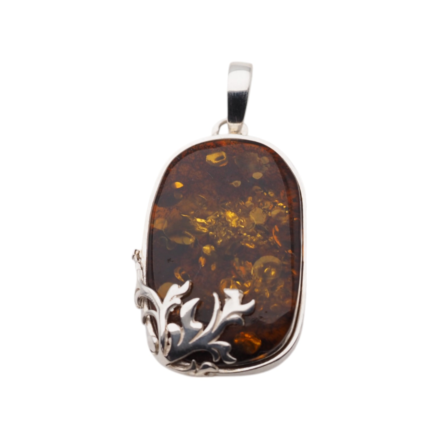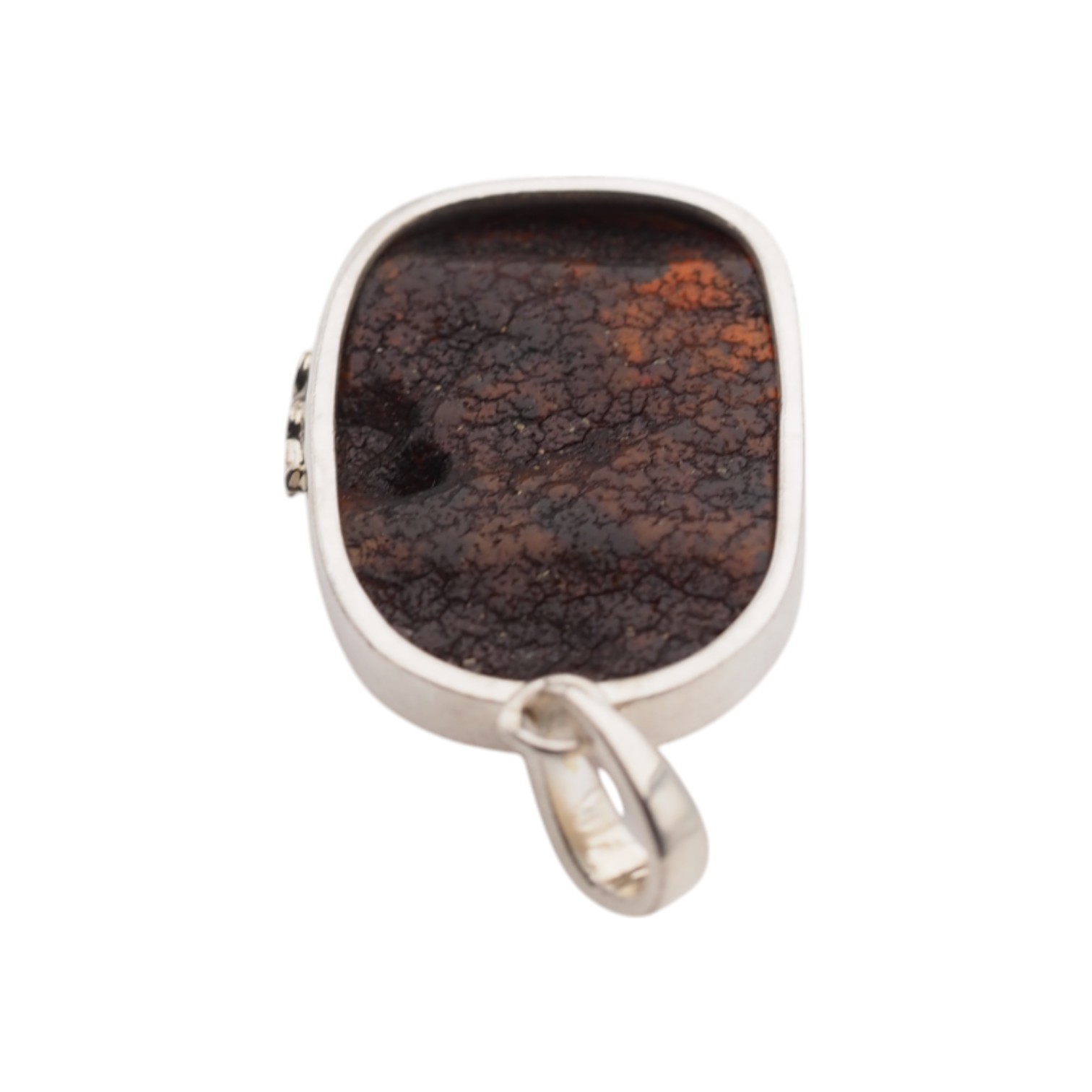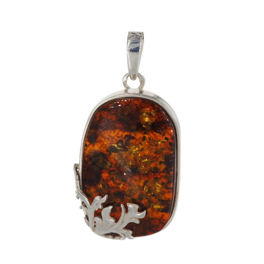 Koniakowy Bursztyn z łuskami i srebro - zawieszka prostokąt