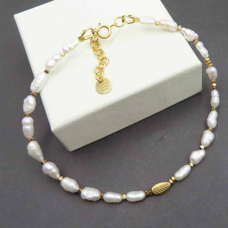 Bransoletka na nogę Perła Hodowana i Hematyt to subtelne połączenie jasnej, eleganckiej perły z połyskiem złoconego hematytu. Całość dopełnia srebro złocone 24K próby 925, które nadaje biżuterii ciepły, szlachetny charakter i podkreśla jej minimalistyczny, a jednocześnie dekoracyjny styl.