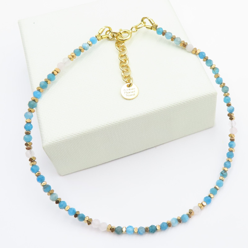 Bransoletka na nogę Apatyt, Kamień Księżycowy i Hematyt w srebrze złoconym.