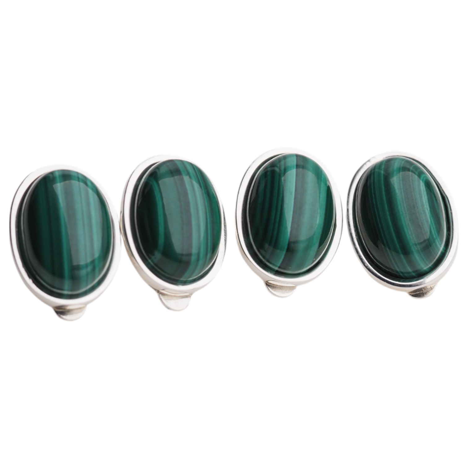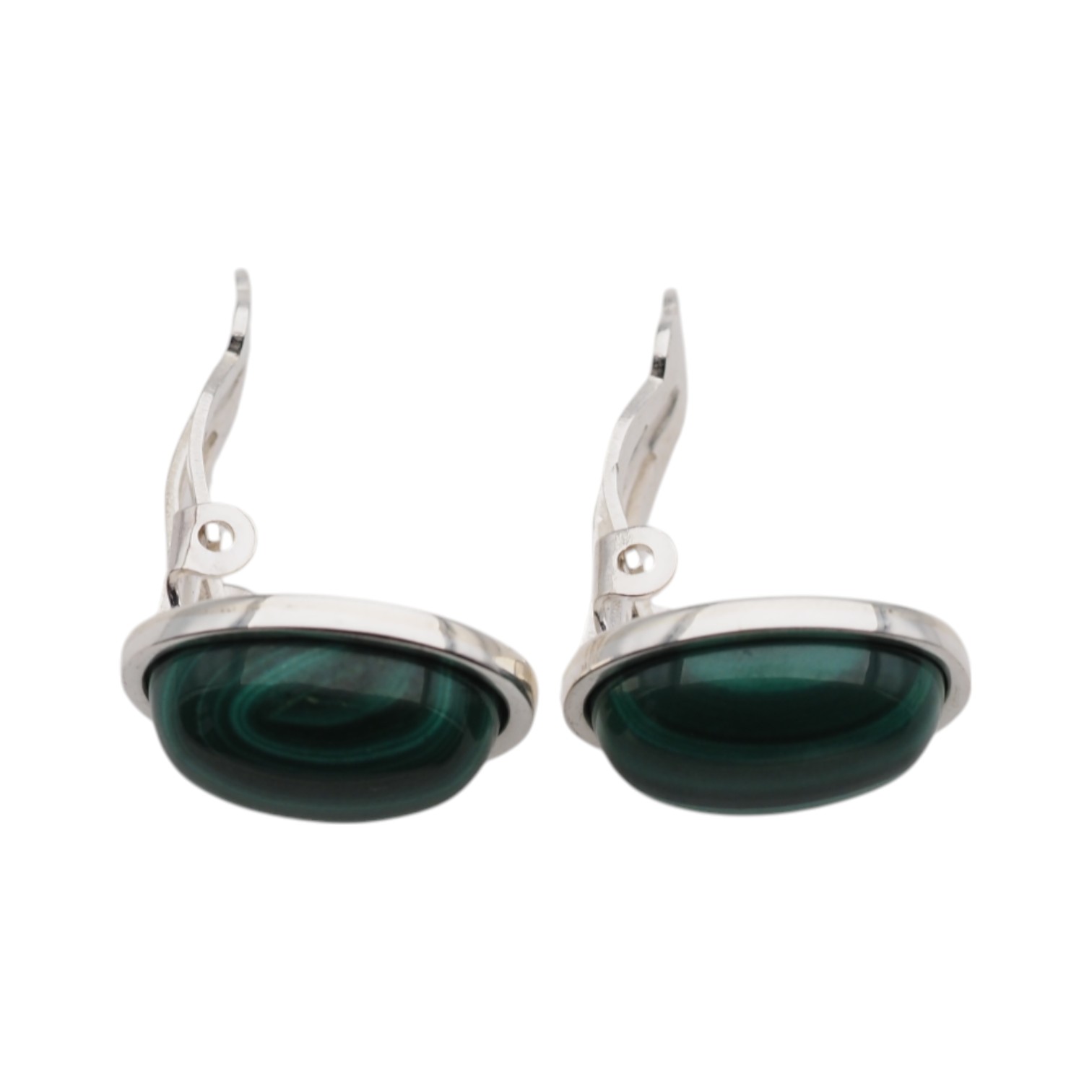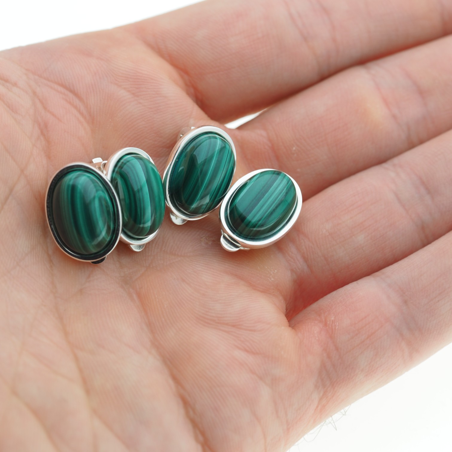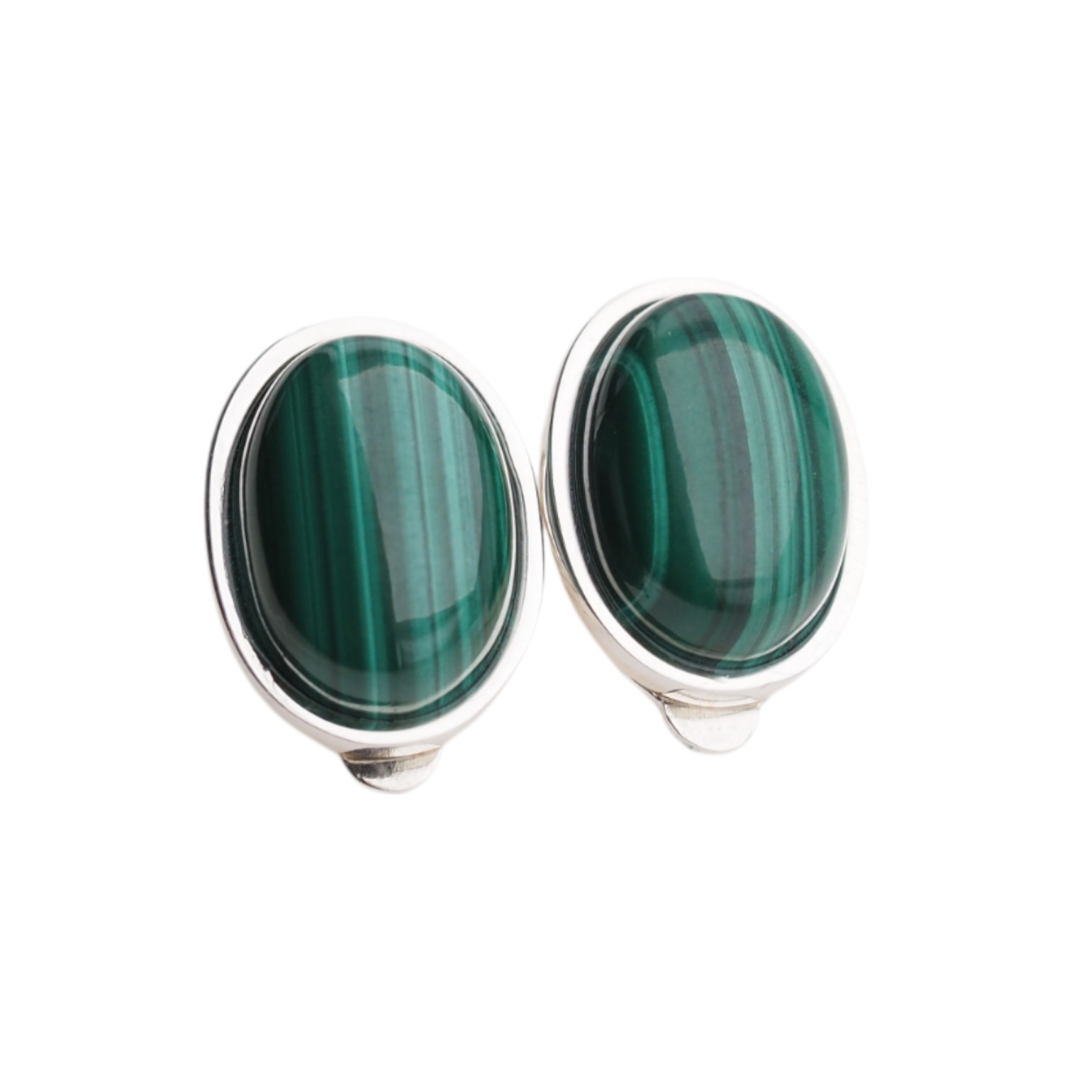 Klipsy z Malachitem w kształcie owalnym.