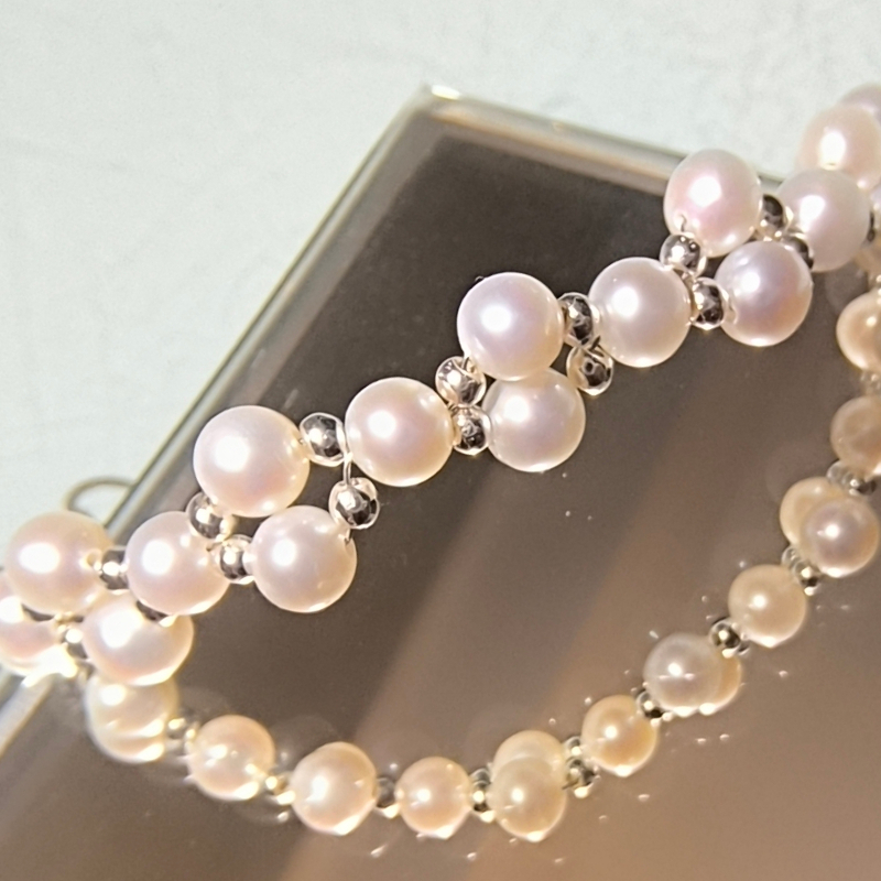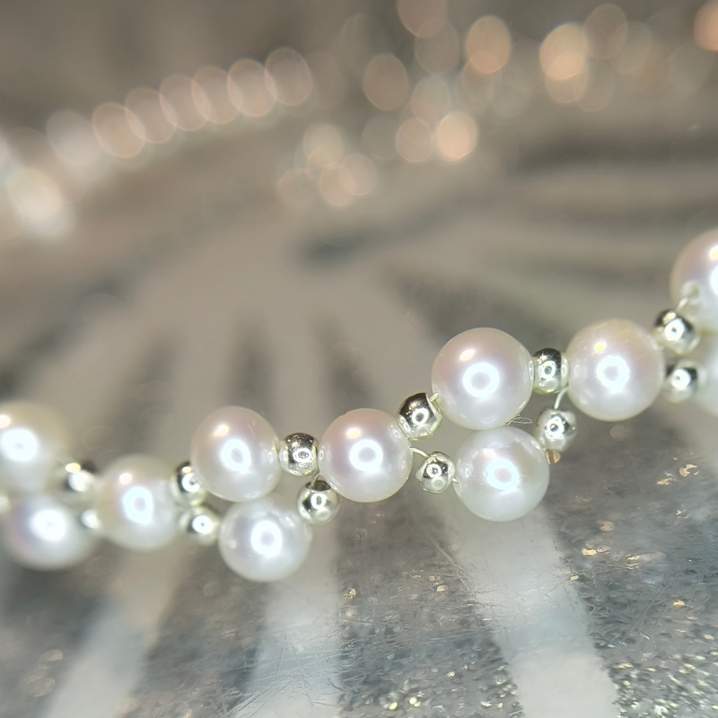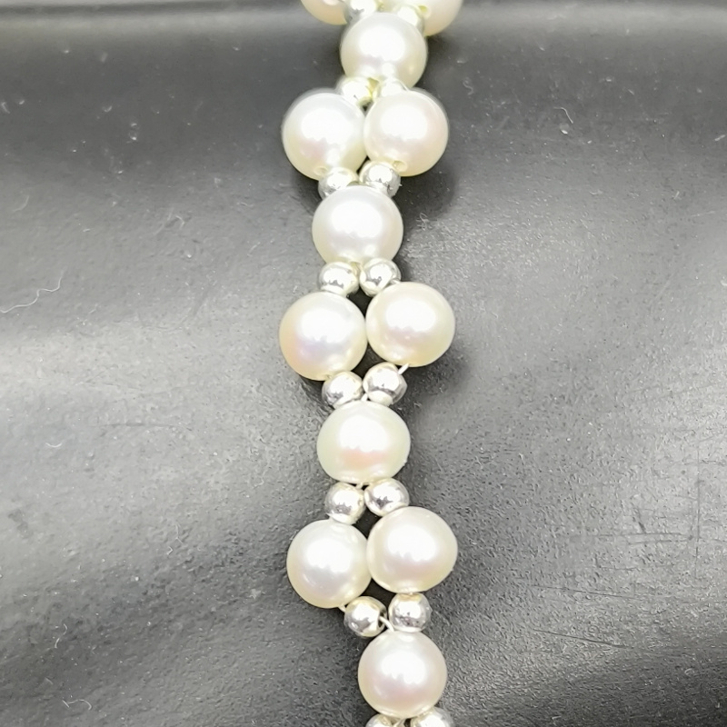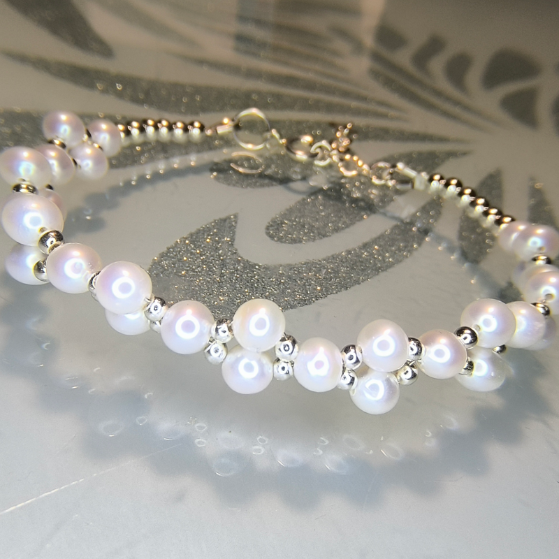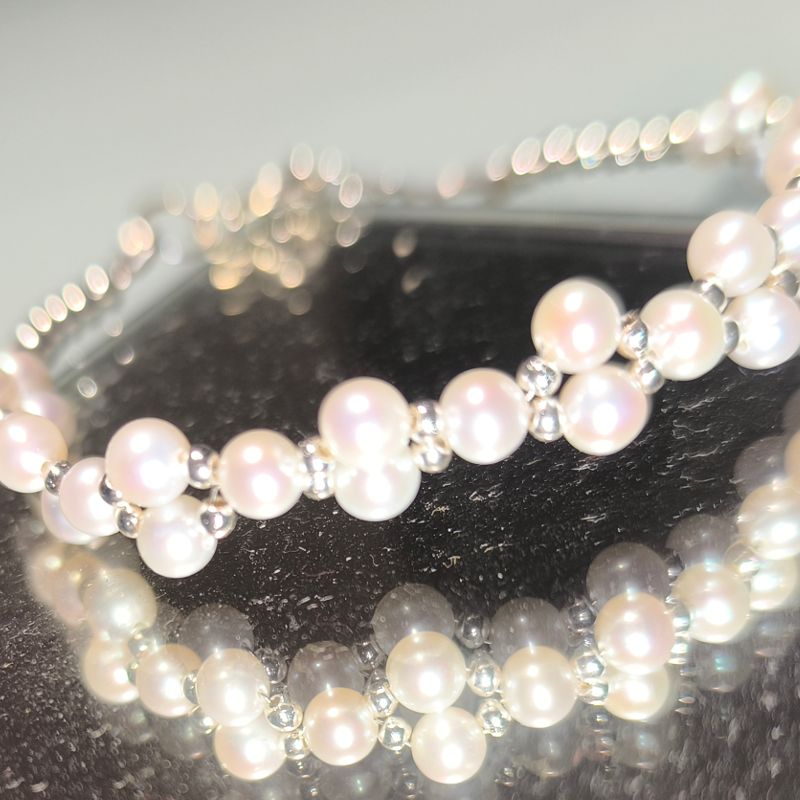 Bransoletka Perły Hodowane i Hematyt w srebrze.