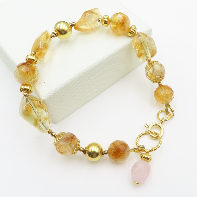 Kamienie: cytryn, kwarc różowy i hematyt złocony.