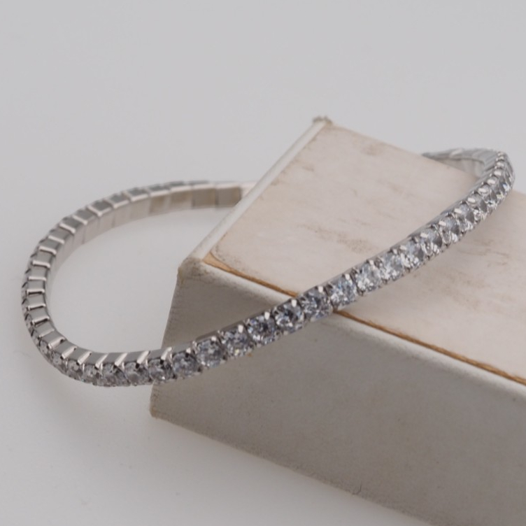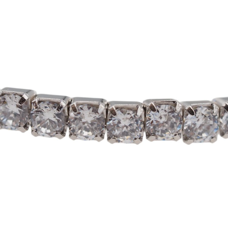 Delikatna bransoleta ze srebra z okrągłymi cyrkoniami to klasyczna, biżuteryjna forma, która subtelnie odbija światło. Srebrna oprawa w próbie 925 podkreśla chłodny, elegancki charakter kompozycji, a regularny kształt kamieni nadaje całości uporządkowany, ponadczasowy wygląd.