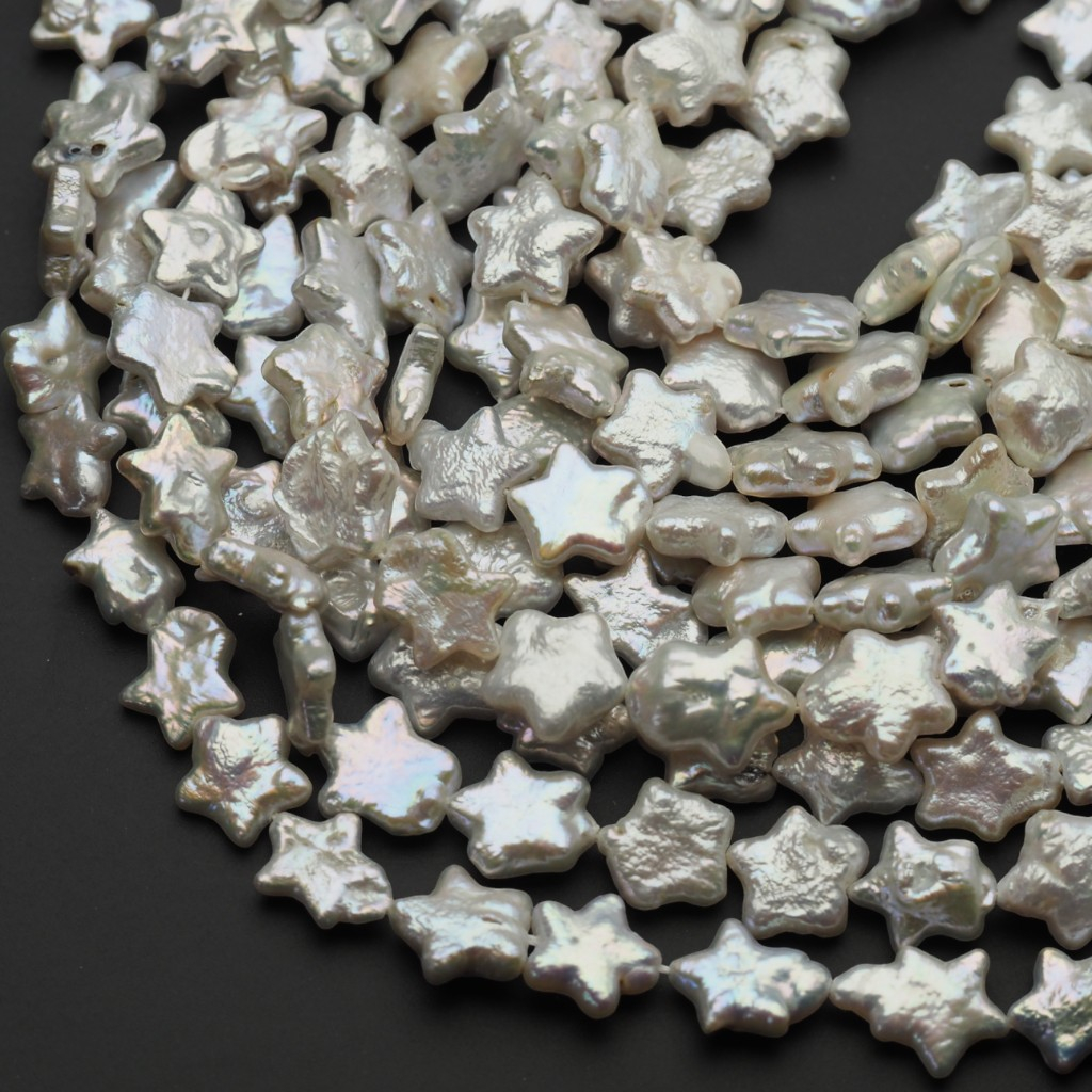 Naturalne Perły Hodowane białe - słodkowodne w kształcie gwiazdy.
