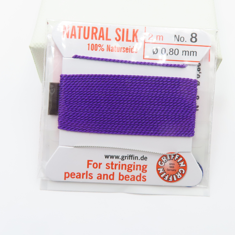 Nici jedwabne z igłą w kolorze fioletowym to estetyczny, dyskretny element warsztatu jubilerskiego, który dobrze komponuje się z projektami wymagającymi spójnego wykończenia. Kolor nadaje pracy subtelny akcent i ułatwia kontrolę nawlekania podczas pracy.