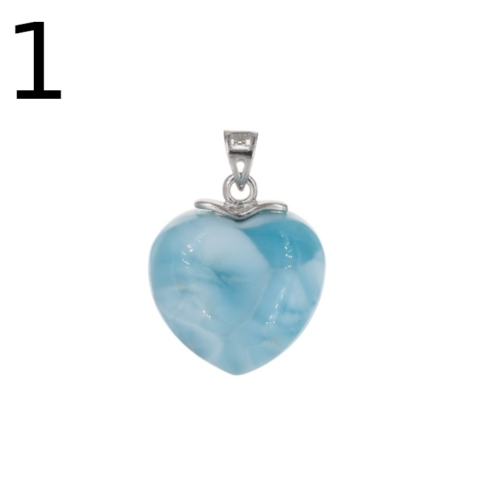 Ręcznie wykonana zawieszka z naturalnym larimarem w kształcie serca zachwyca mleczno-błękitną kolorystyką i spokojnym, „morskim” charakterem kamienia. Całość osadzona jest w srebrnej, rodowanej oprawie, która podkreśla elegancki wygląd i dodaje biżuterii szlachetnego wykończenia.