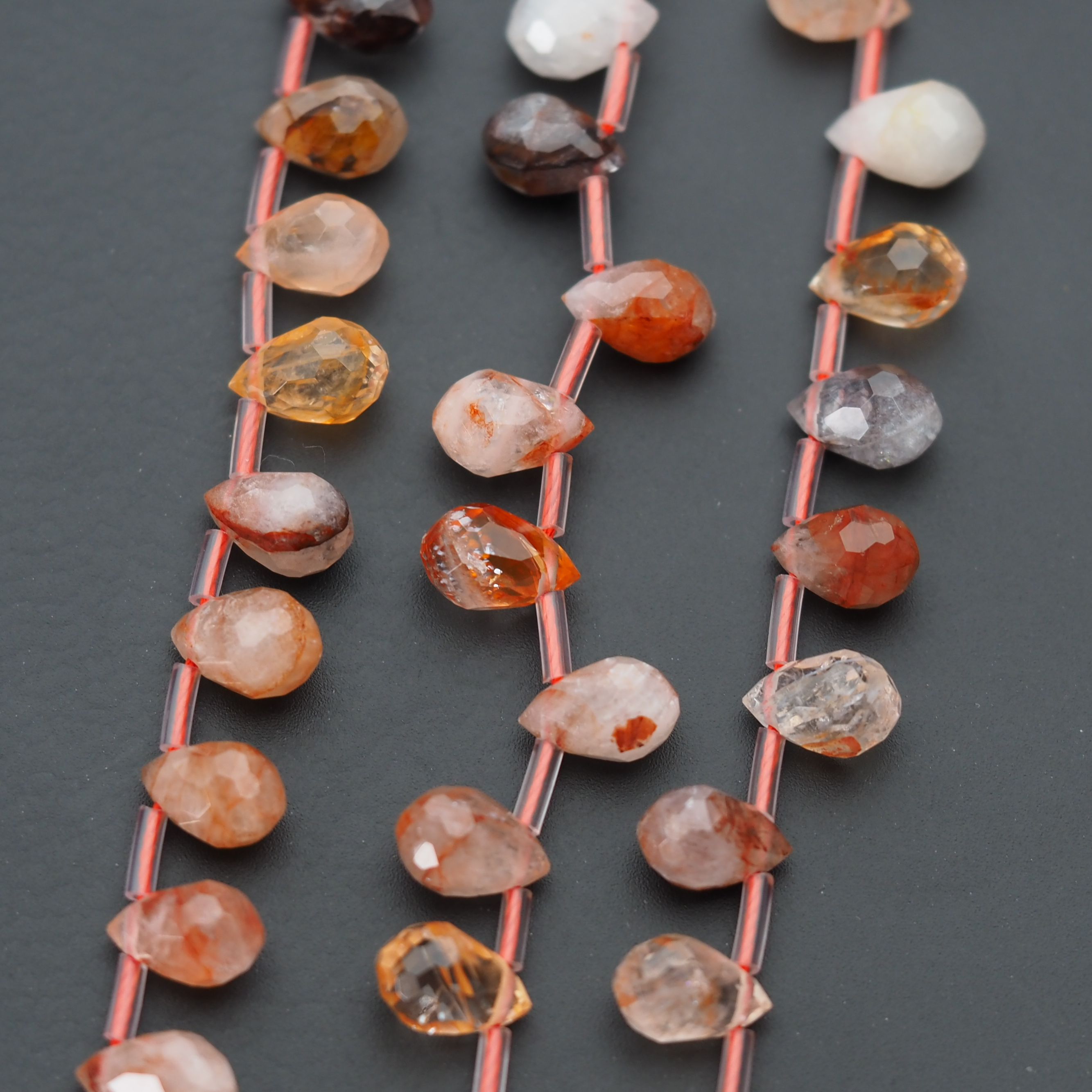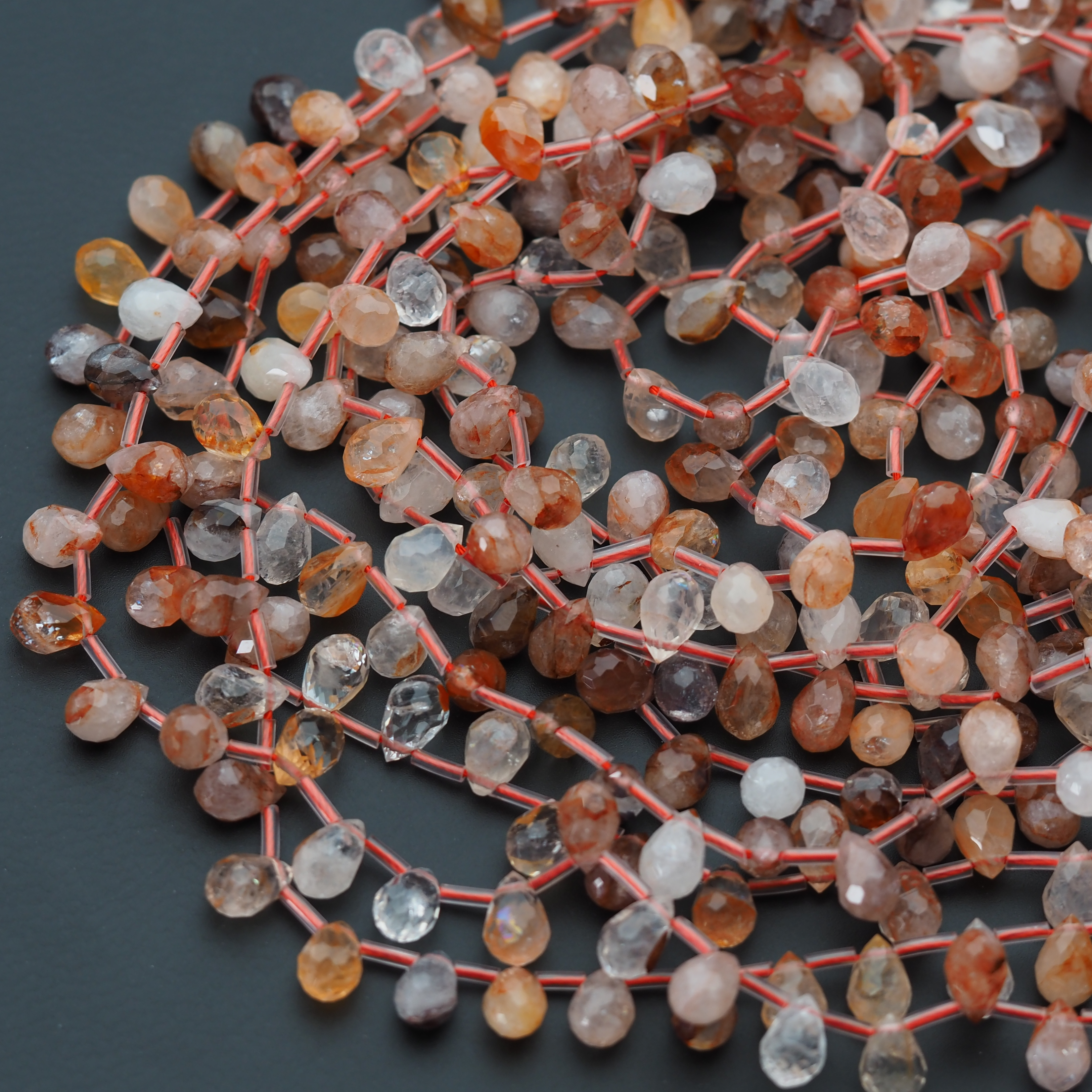 Naturalny Kwarc Czerwony fasetowane krople briolette.