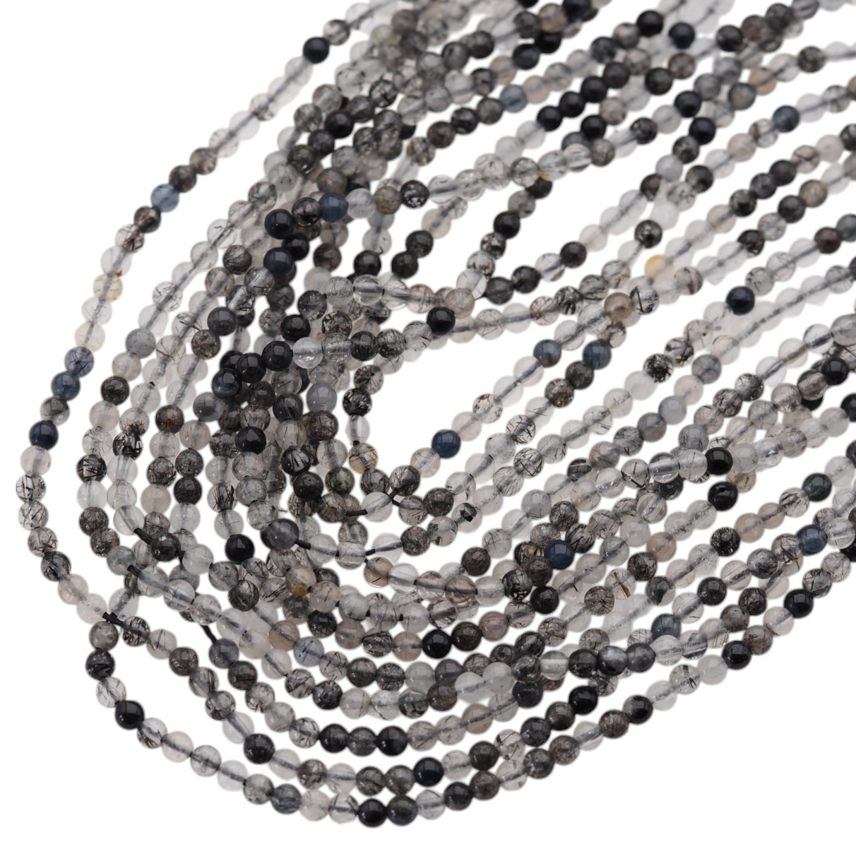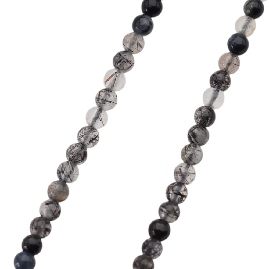 Naturalny kwarc rutylowy czarny w formie polerowanych kulek to efektowny materiał o wyrazistym, głębokim charakterze. Gładkie wykończenie podkreśla naturalny rysunek kamienia i nadaje mu elegancki, jubilerski wygląd.