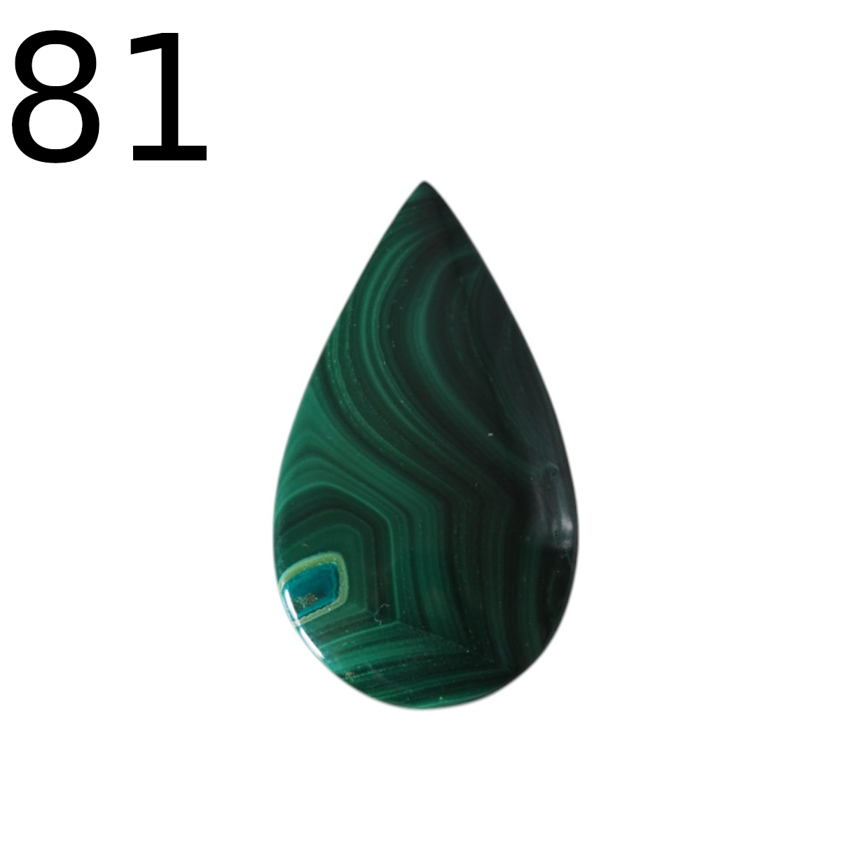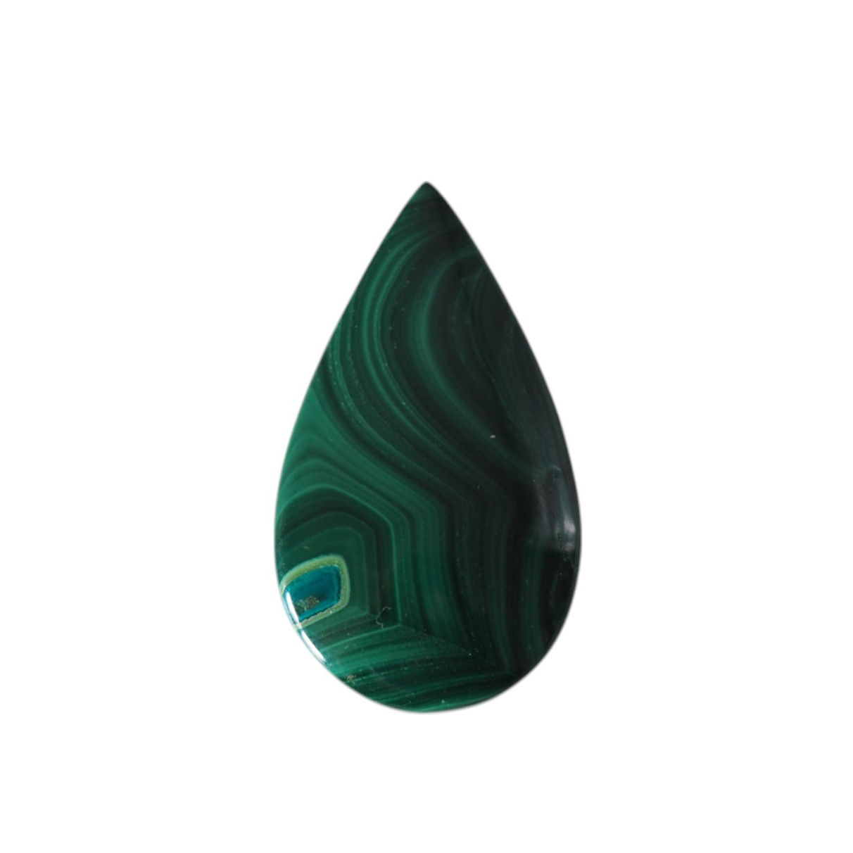 Naturalny Malachit w kształcie łzy.