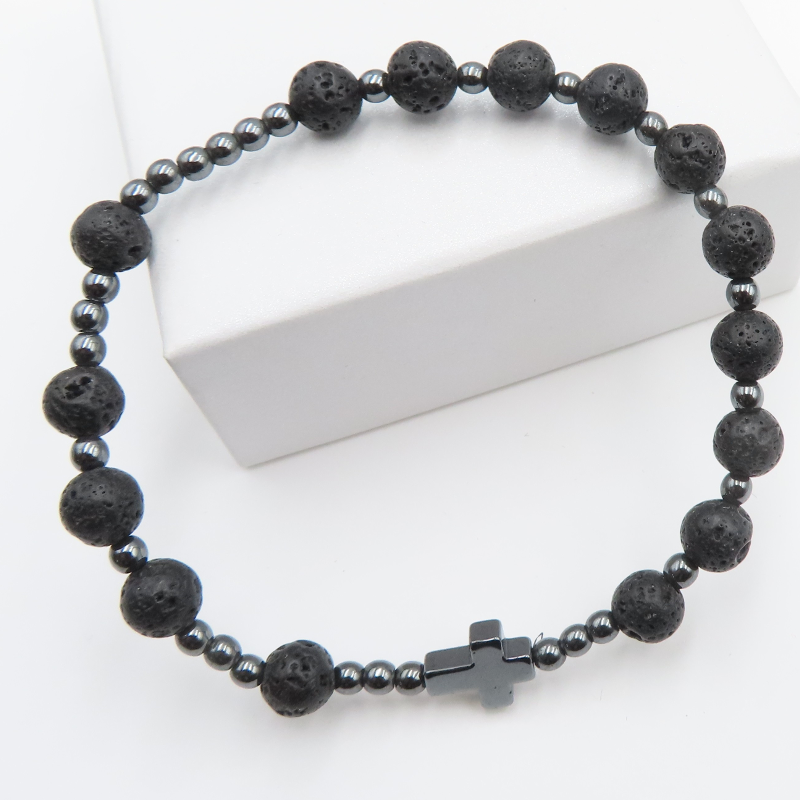 Bransoleta Różaniec - Lawa Wulkaniczna i Hematyt.